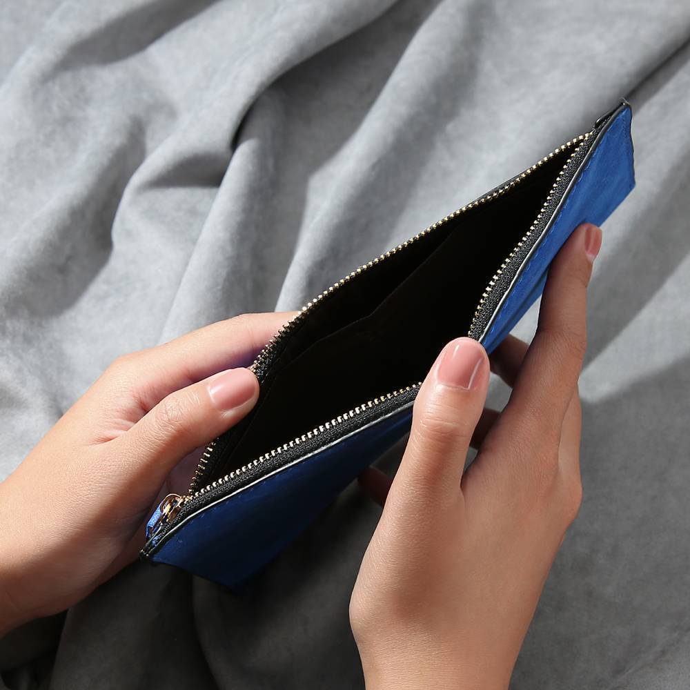 カスタマイズ ブルー 革財布 妻へのプレゼント