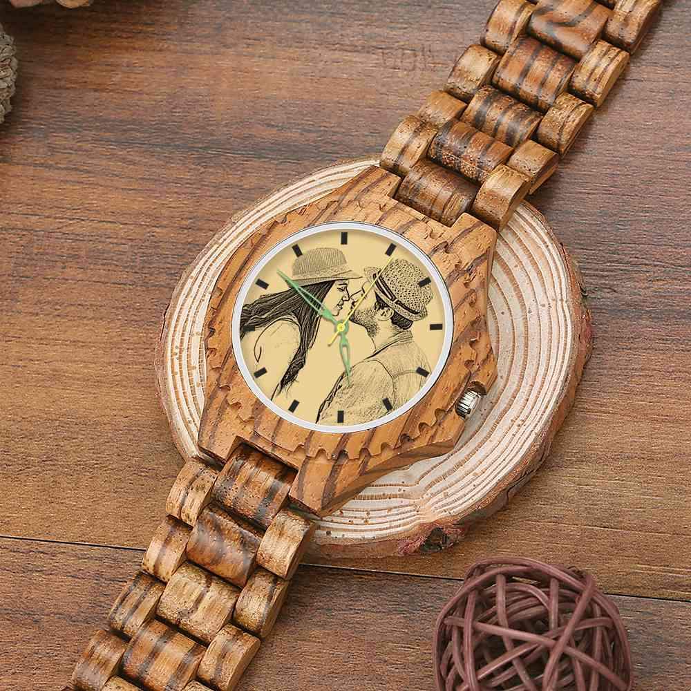 カスタマイズ 木製 写真刻印 時計メンズ 彼氏プレゼント