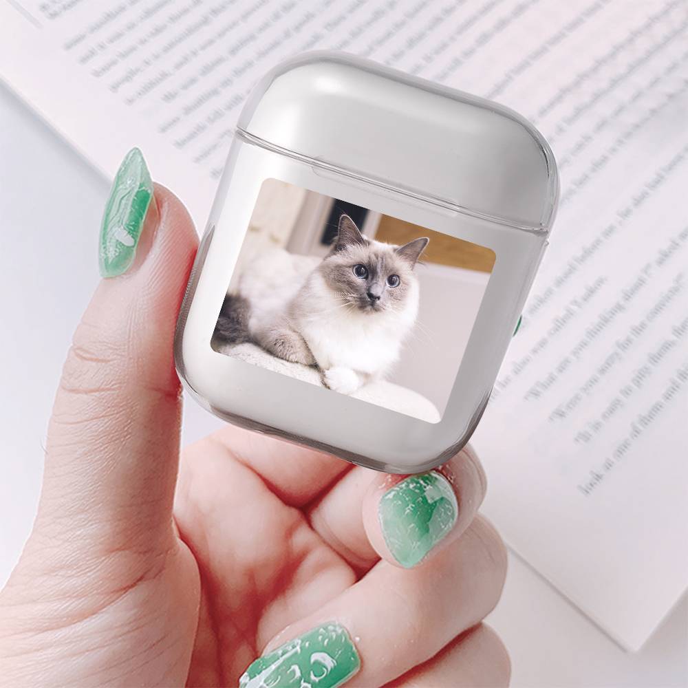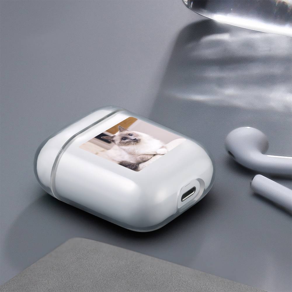 カスタムイヤホンケースAirPods用可愛いネコ柄イヤホンケース-透明ケース全面保護カバー