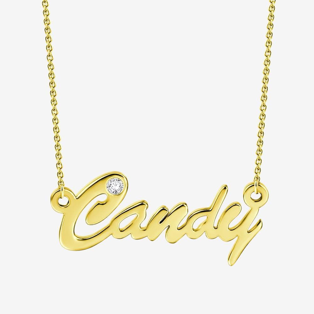 • カスタムネームネックレス。さまざまな素材から選択できます。