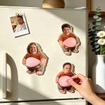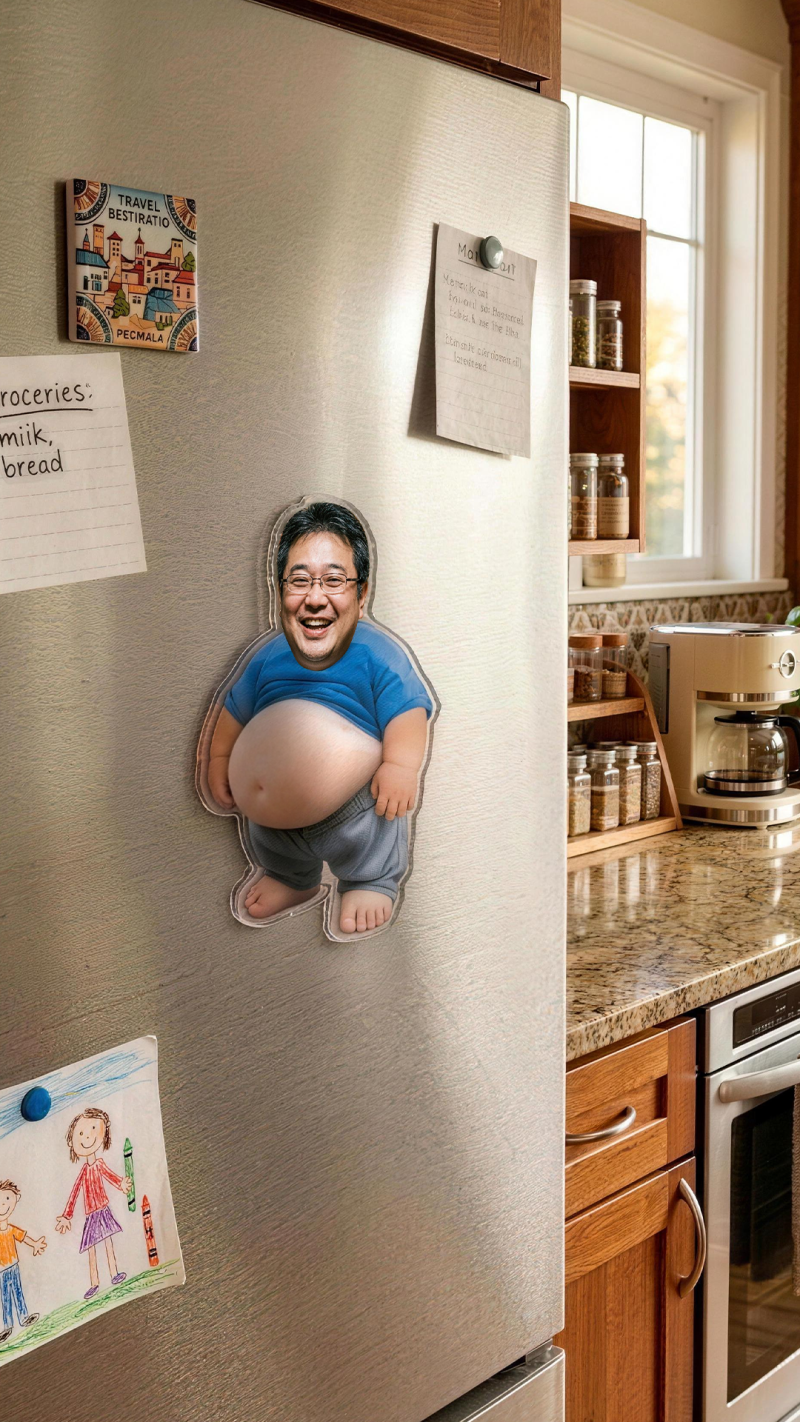 このカスタムフェイススクイーズベリーステッカーを使えば,写真をアップロードして顔を切り抜き,柔らかくて握れるお腹が付いた愛らしいキャラクターに変身させることができます.