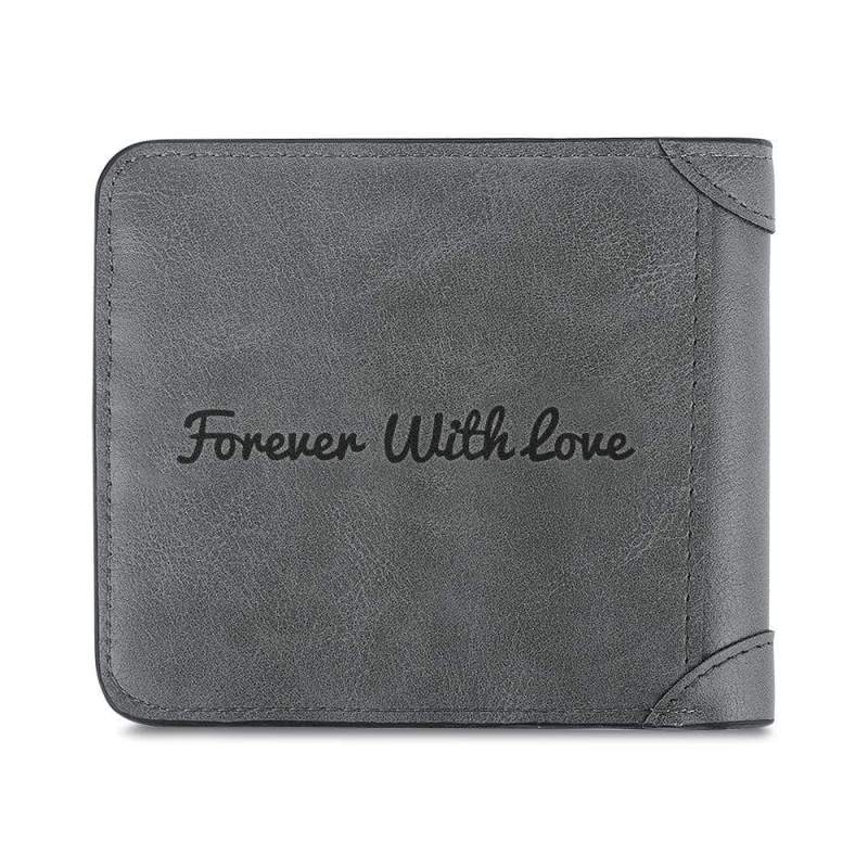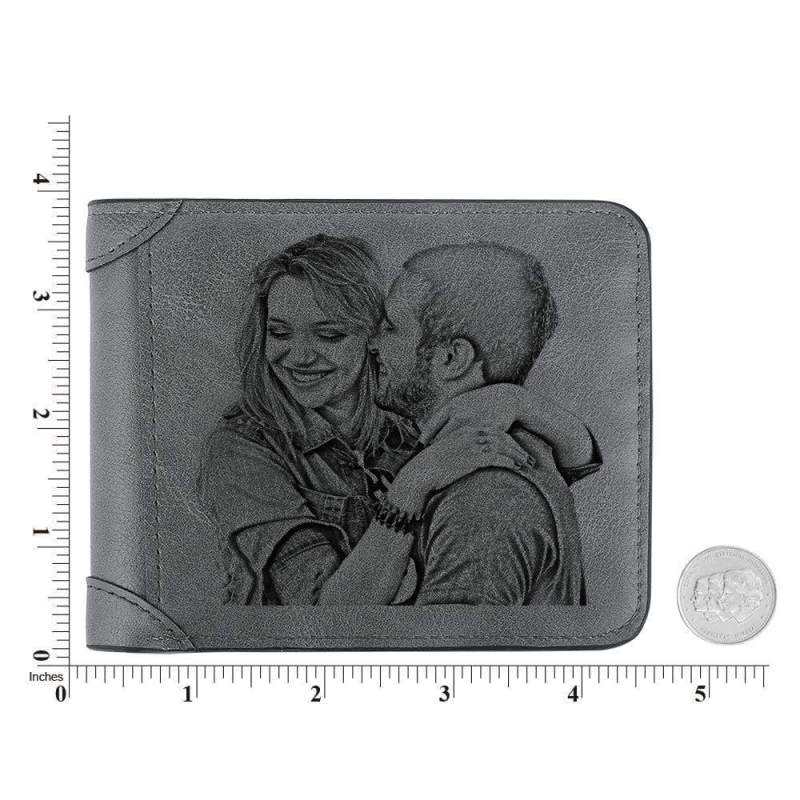 カスタム 写真 グレー 革財布 記念日贈り物