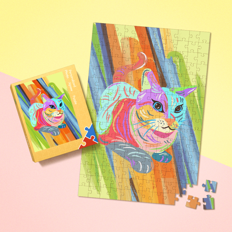 トリッピーパズルカスタム写真パズルカラフルな猫パズル面白いギフト