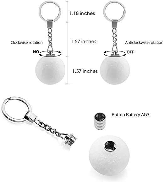 - 使いやすい:白色光;マルチカラーライト(白、赤、青の照明色。キーチェーンノブを時計回りに回すとムーンランプがオンになり、反時計回りに回すとオフになります。)