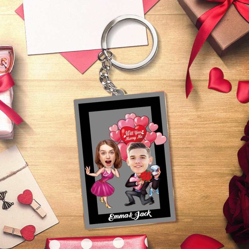 彼女のための写真アクリルキーホルダーバレンタインデーギフトカスタム名キーホルダー
