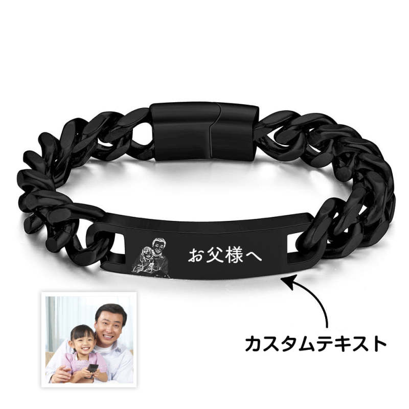 父の日ギフト カスタム刻印メンズブレスレット フォトヴィンテージブレスレット-ブラック