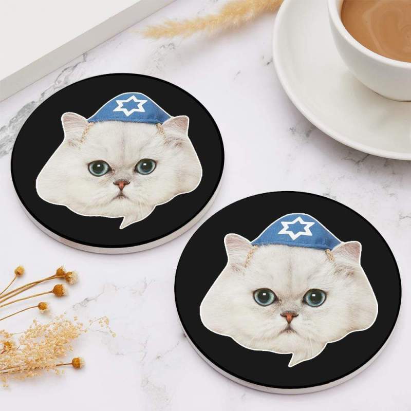 猫が飼う人へのギフトパーソナライズされたコースタカップマットおすすめーギフト-円形