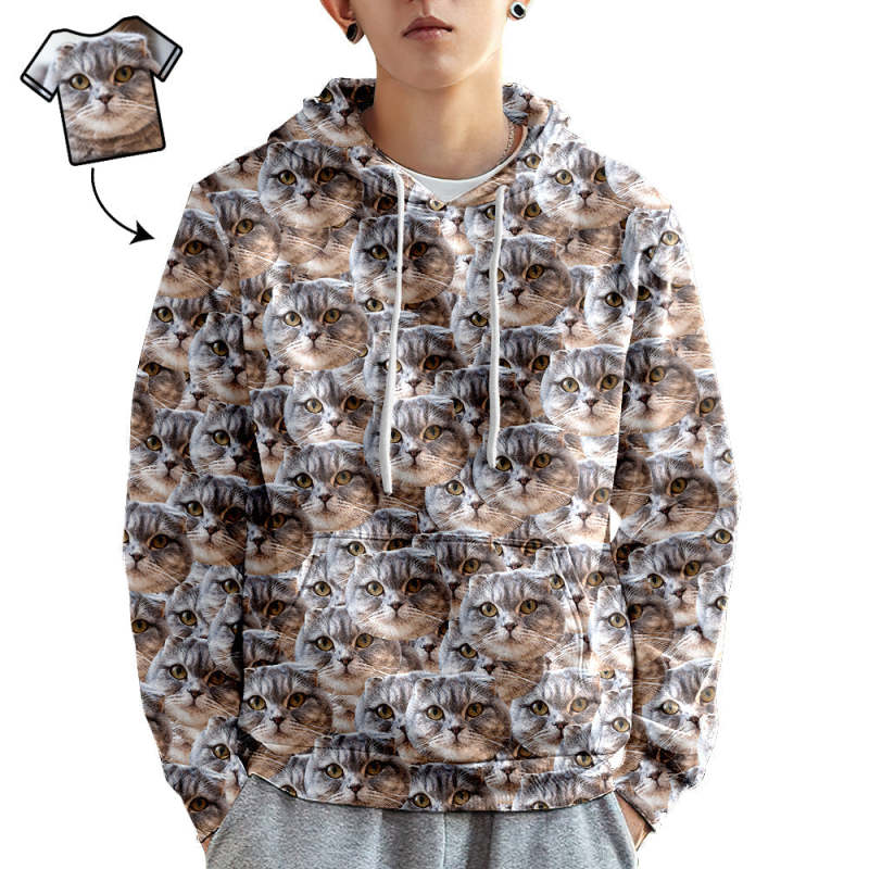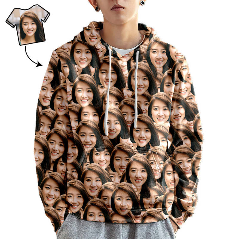 カスタムフェイスユニセックスパーカー - カジュアルプリント写真スウェット男性女性用 - マッシュフェイス。家族、恋人、友人、またはあなた自身へのユニークなギフト。