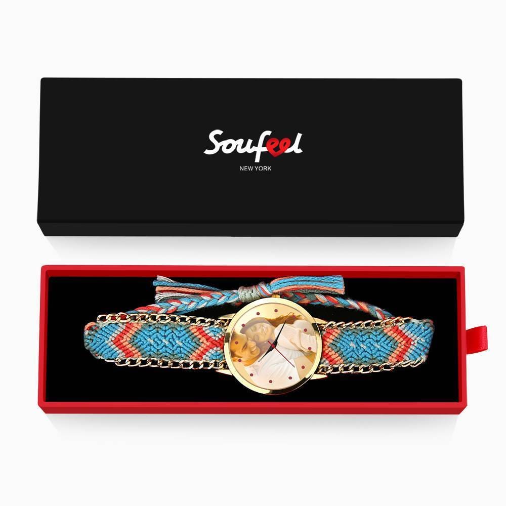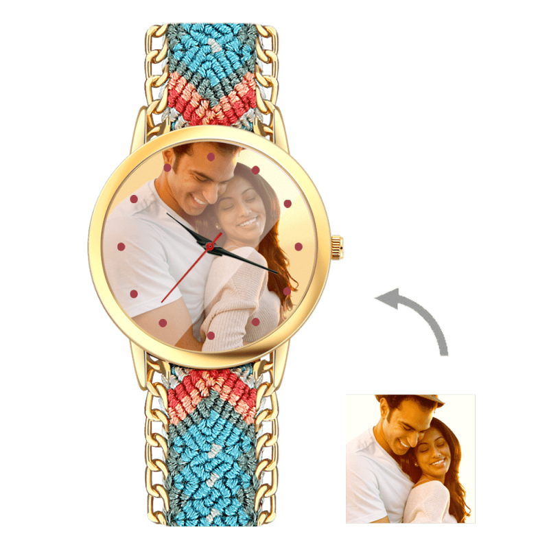 記念プレゼント 写真腕時計 編みこみの色 ストラップ40mm