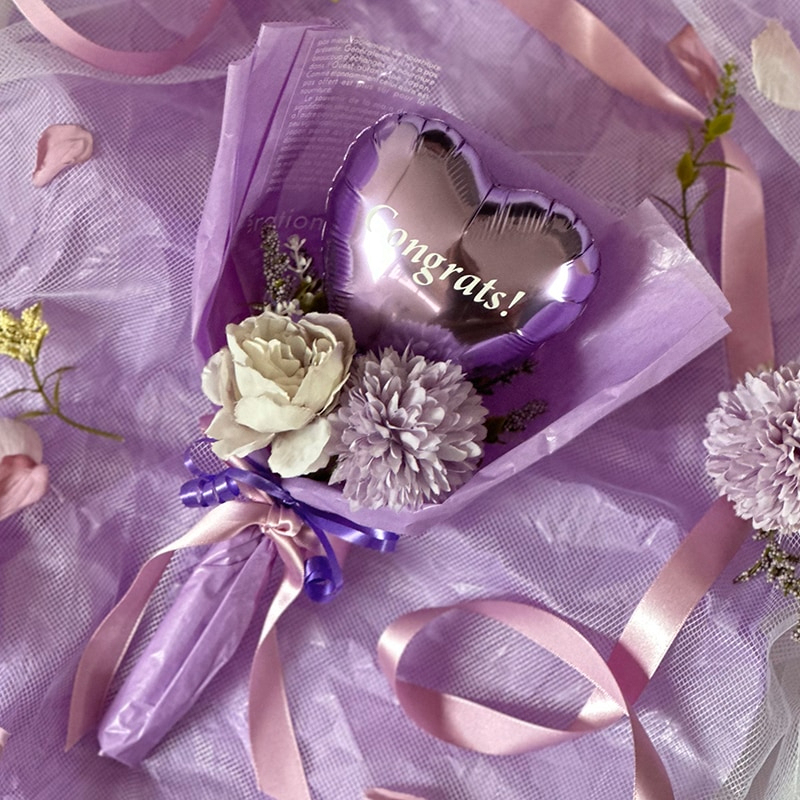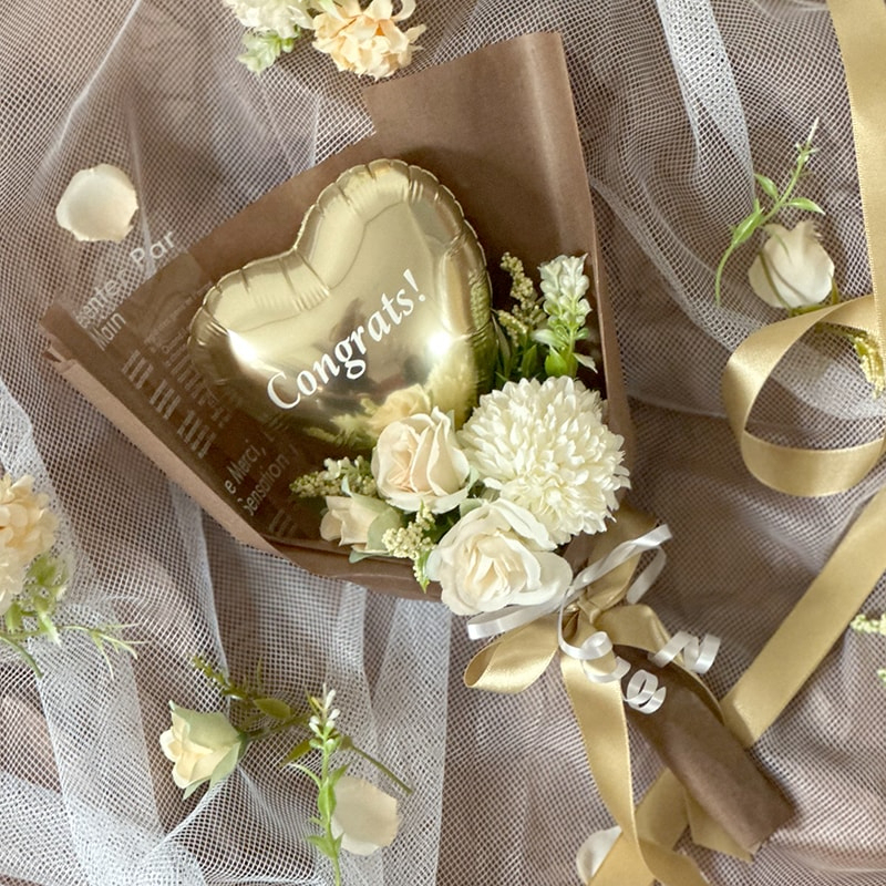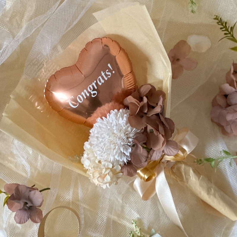 プレゼント ミニブーケ プチブーケ バルーンブーケ ハート 誕生日 お祝い 推し活 メンカラ部活 卒業式 卒業式 お揃い