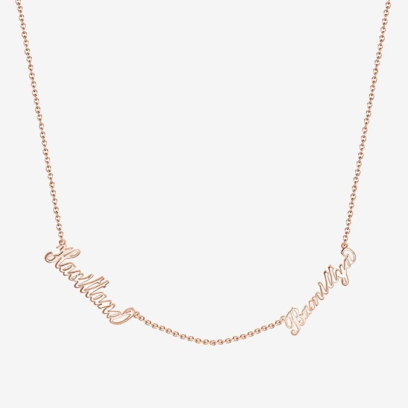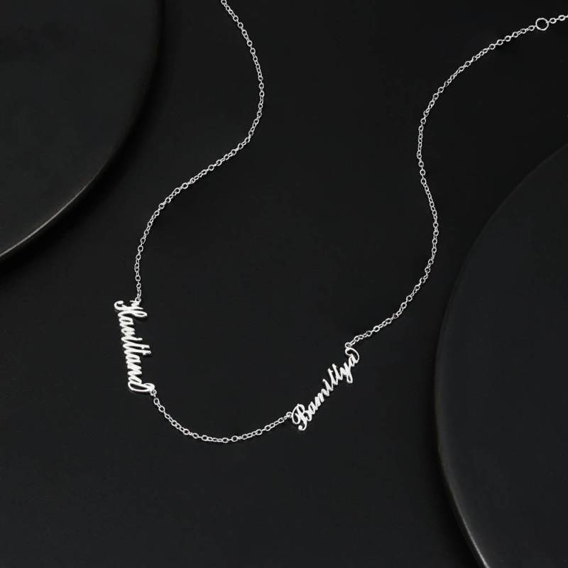 • カスタムネームネックレス。さまざまな素材から選択できます。