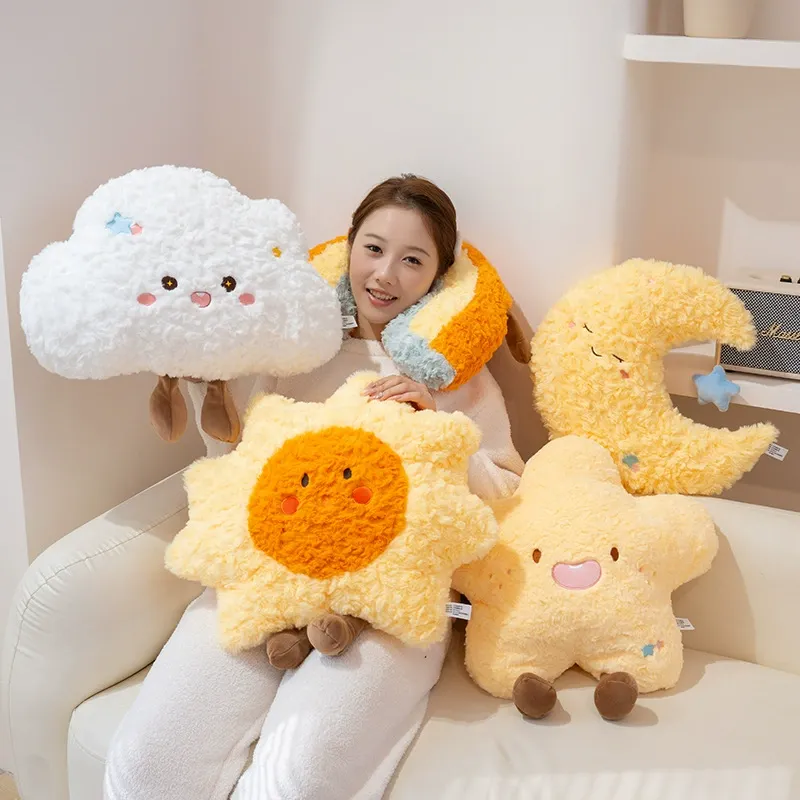 この愛らしいウェザーシリーズのプラッシュピローで,空を室内に取り入れてみませんか?夢のような雲と虹のデザインが特徴の,とても柔らかいクッションは,抱きしめたり,お昼寝をしたり,お部屋にちょっとした遊び心を添えたりするのに最適です.上質なプラッシュ生地と心地よいPPコットンを詰め合わせたこのクッションは,柔らかさとサポート力の完璧なバランスを提供します.