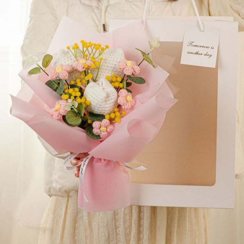 小さめ 手作り 編みフラワー 花束 編み花束 お祝い かぎ針編み 完成品 編み物 母の日 造花