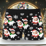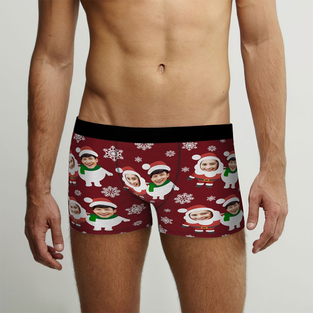 カスタム顔ボクサーパンツ-2つの顔の写真入れ可能なオリジナルフォト下着ショーツクリスマスギフト-可愛いサンタと雪だるま