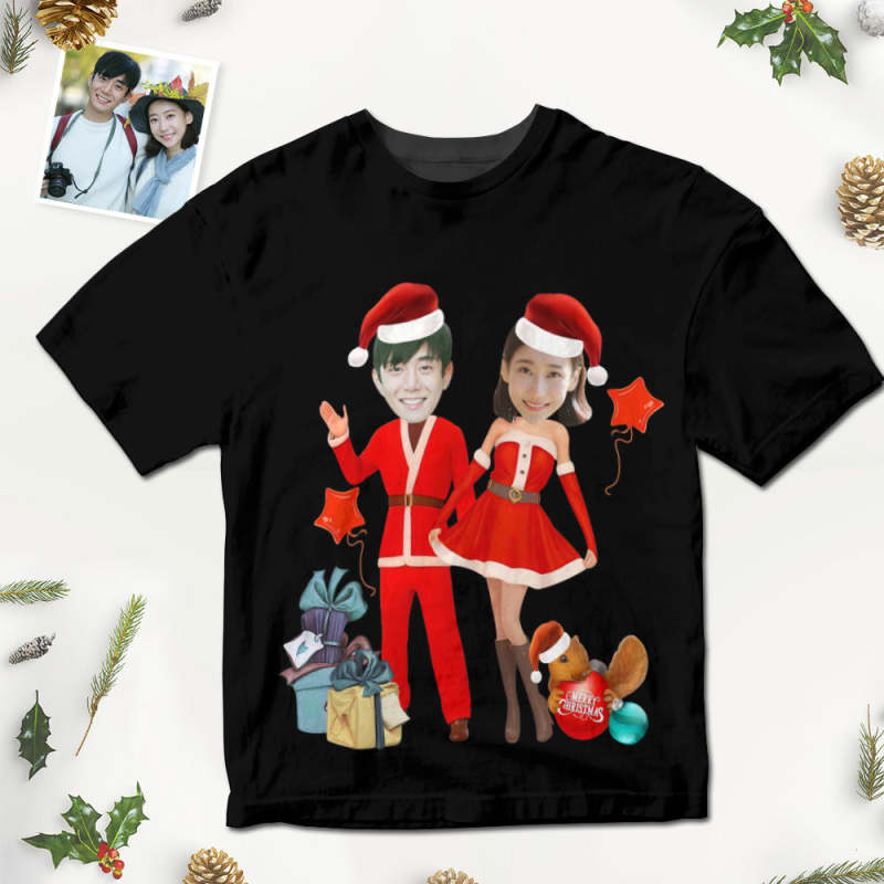 カスタムフォトTシャツ-顔の写真入り可能な男女兼用オリジナルTシャツプレゼント-サンタクロースのプレゼント