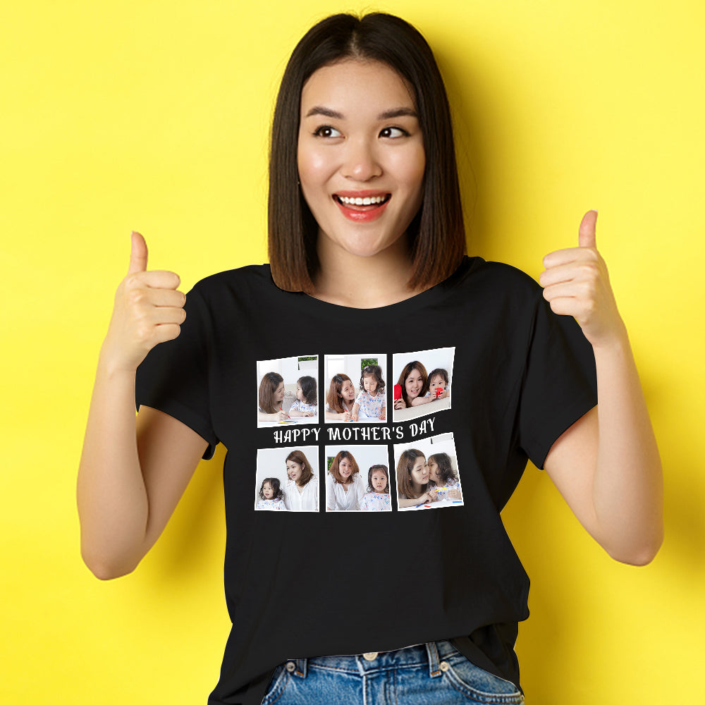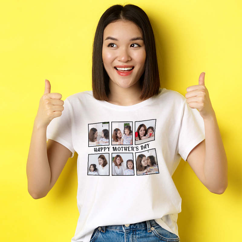 カスタムフォトTシャツ - 写真6枚入れ可能なオリジナル写真T-SHIRTプレゼント - 母の日おめでとう