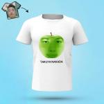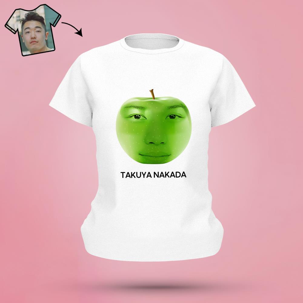 カスタムりんご柄のフェイスTシャツ - パーソナライズされた写真T-SHIRT - 写真と名前入れ可能な面白いプレゼント黒