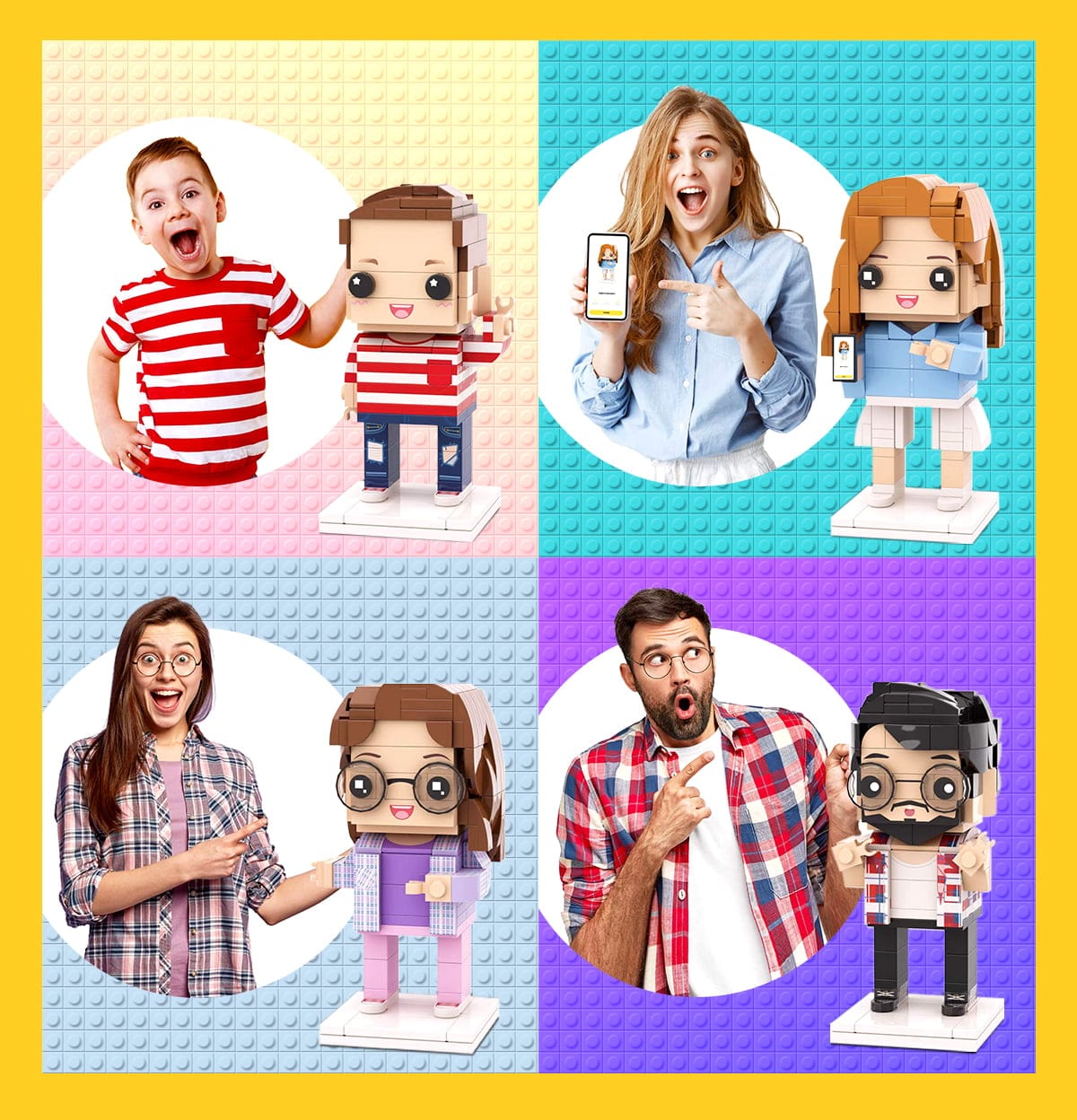 - 写真の選択はレンガ フィギュアのデザインの始まりです。正面、全身、透明、カバーなし、明るい色を着ている、模様のあるフィギュアの写真をアップロードするのが良い選択です。