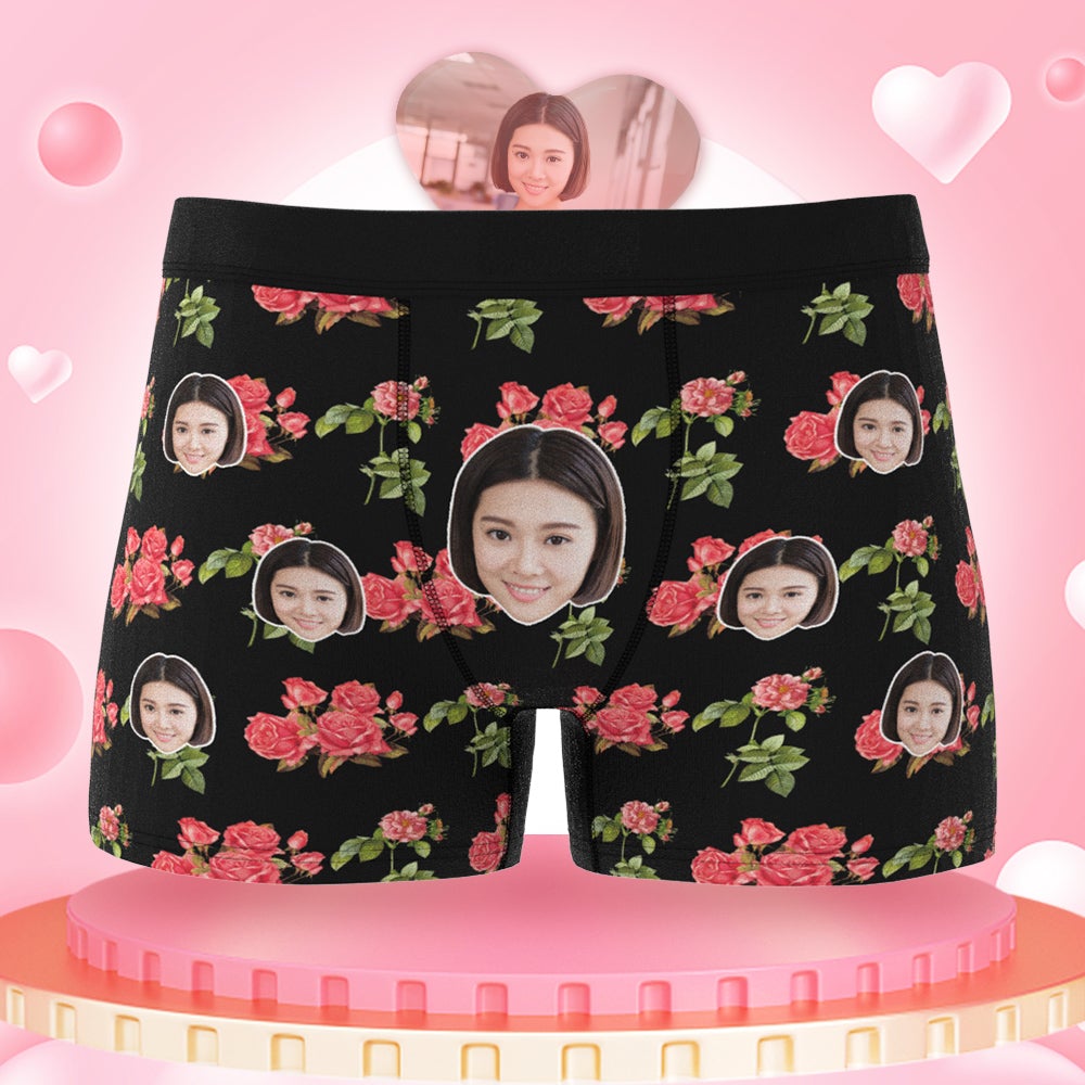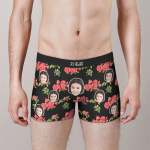 カスタムフォトボクサーパンツ-写真とテキスト入り可能な鮮やかなバラの花柄のオリジナル下着バレンタインプレゼント