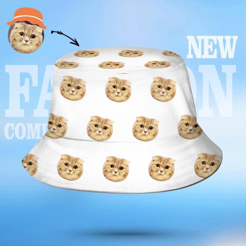 You can upload your own photo, your pet's photo, and your friend's photo to customize the face bucket hat gift.
