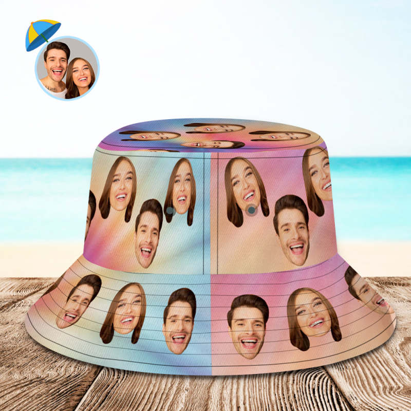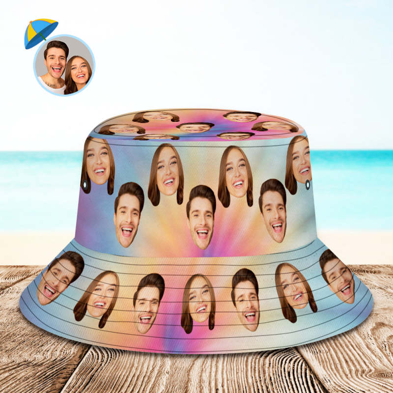 カスタムバケットハットパーソナライズレインボーカラーユニセックスフェイスバケットハットつば広アウトドアサマーキャップ