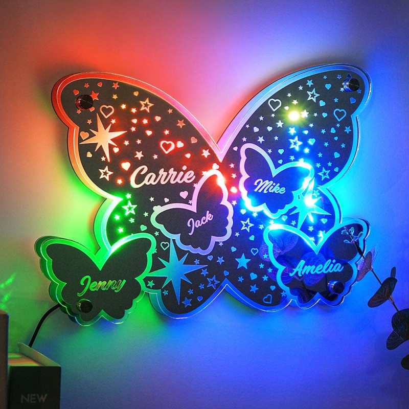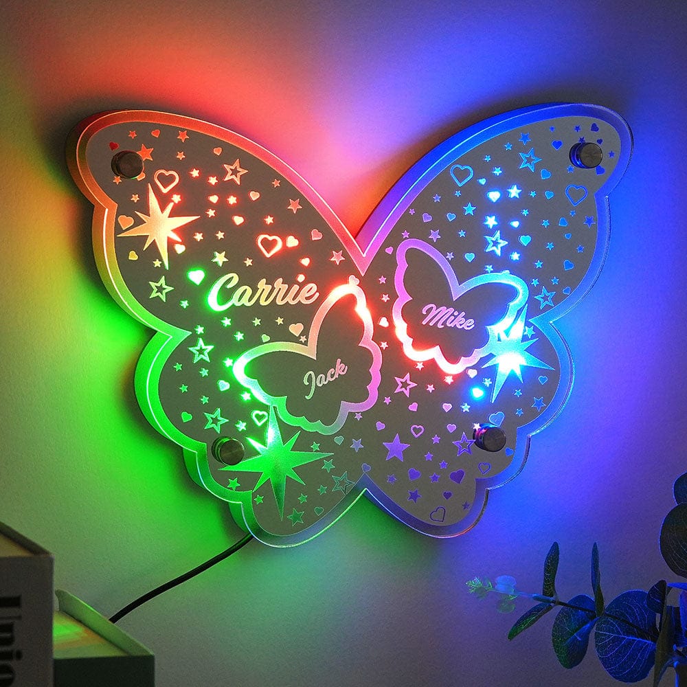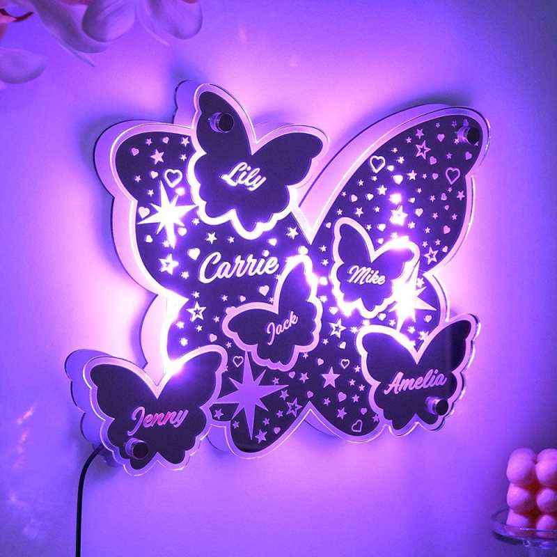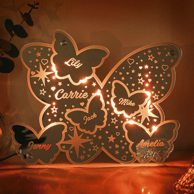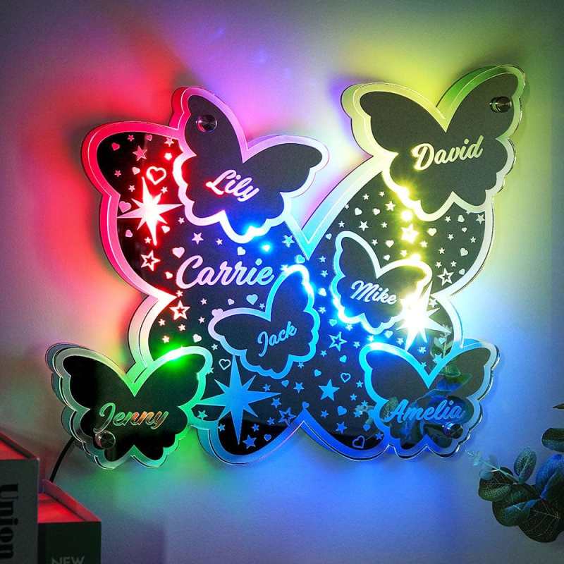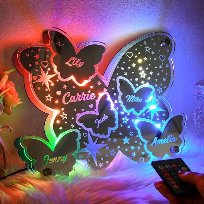 Custom Butterfly Mirror Light with Family Name Personalized Gift for Her/Mom