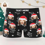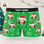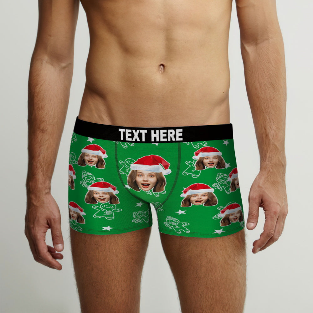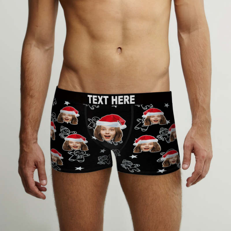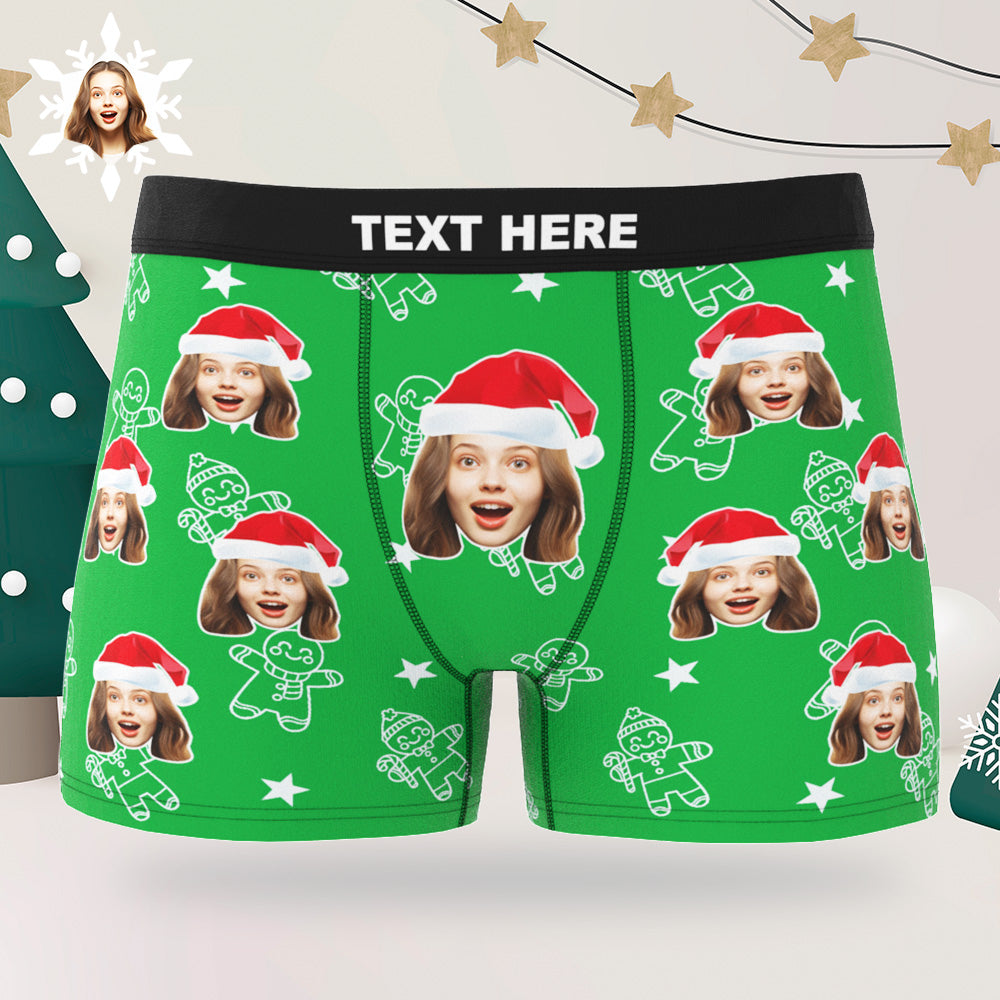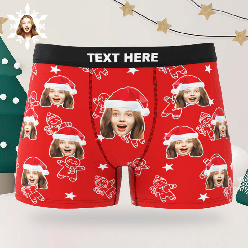 カスタムクリスマス下着、顔付きパーソナライズされたボクサー、ビスケット柄プリント、帽子、ボーイフレンドへのギフト。