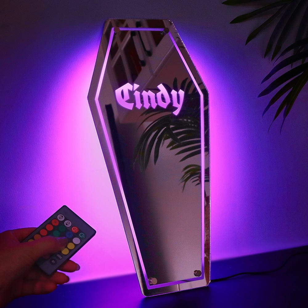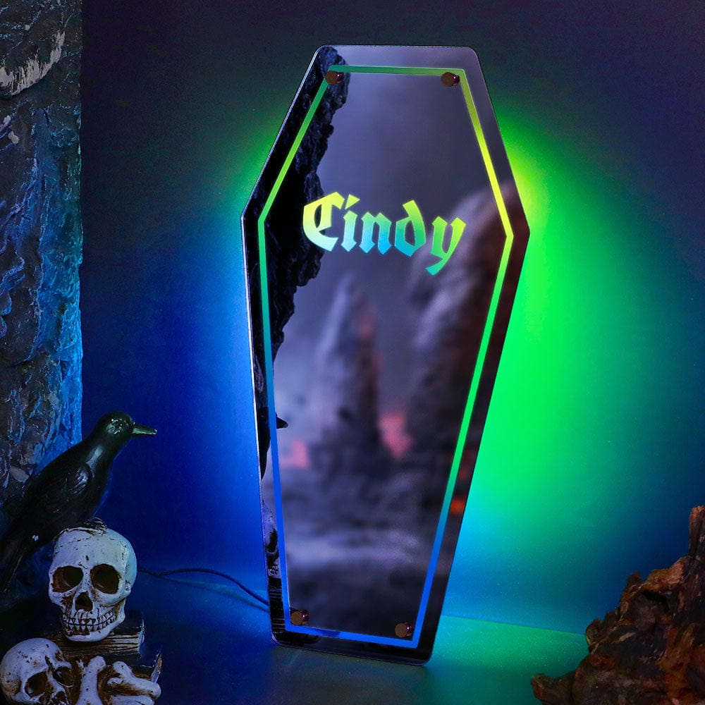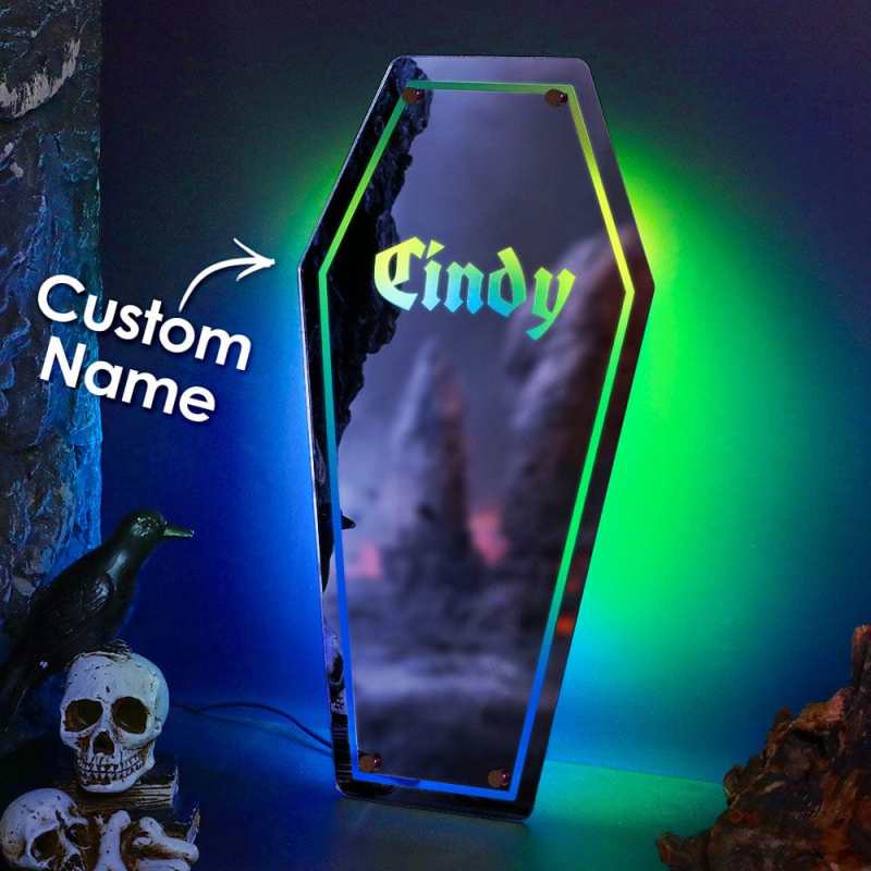 Custom Coffin Mirror Light with Name Gothic Mirror Light for Home Decor