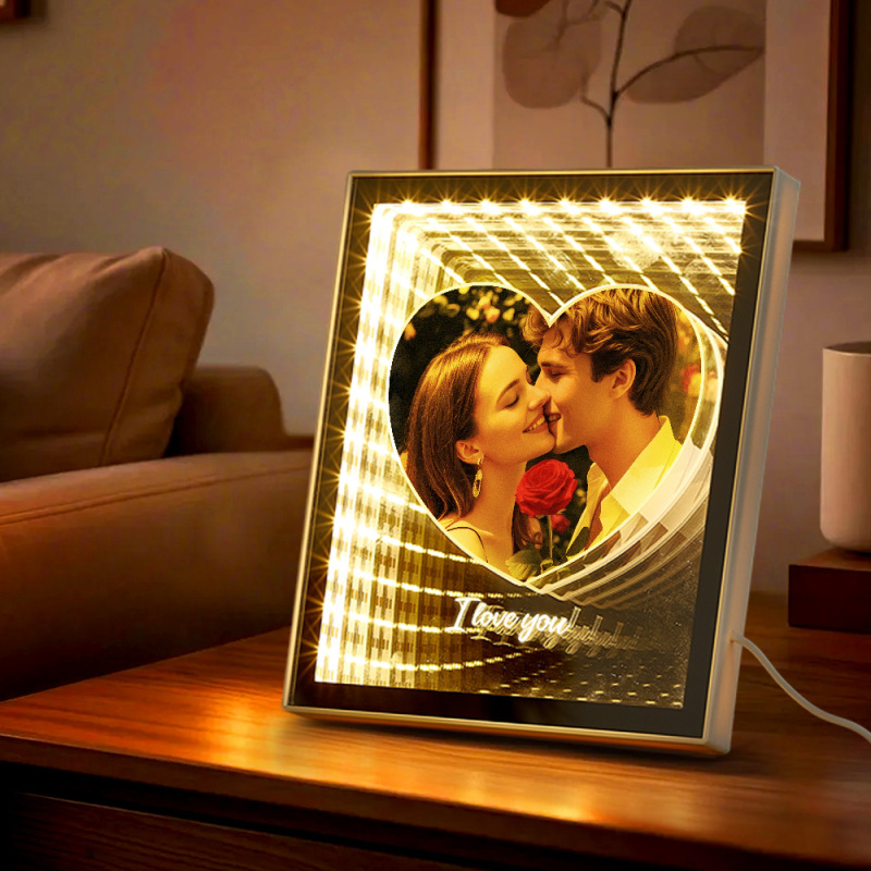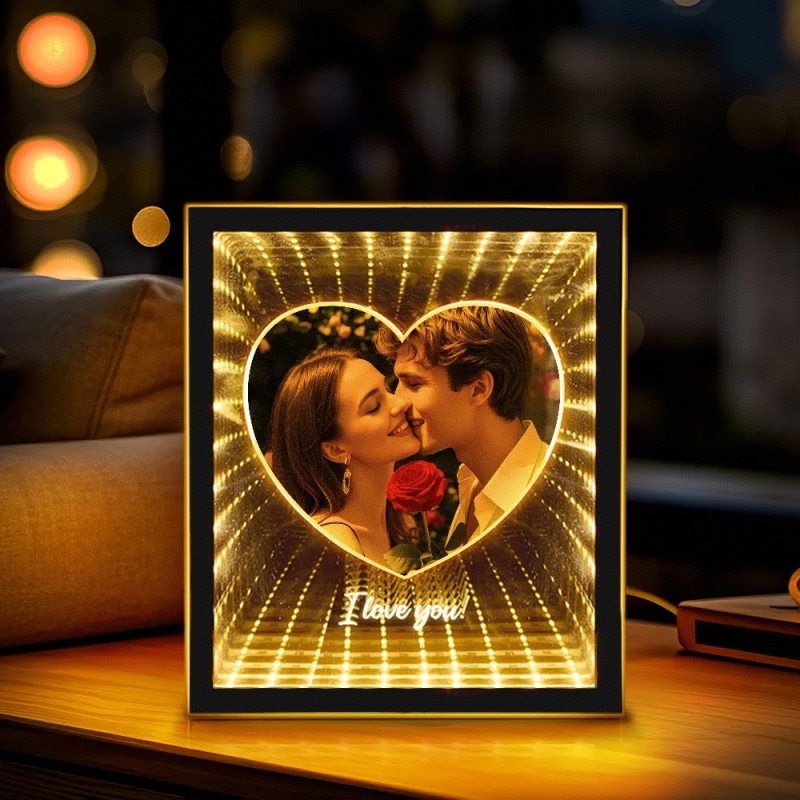 「カスタマイズされたカップルフォト ラブ コリドー ミラー ランプ」は,光と反射を通して大切な思い出を鮮やかに蘇らせる,美しくロマンチックなインテリアアイテムです.あなただけのオリジナル写真をあしらったこのミラーランプは,温かく親密な雰囲気を演出し,お部屋を明るく彩ります.心のこもった贈り物として,あるいはご自身の空間への特別なアクセントとして,愛を称え,いつまでも心に残る思い出を演出するのに最適です.