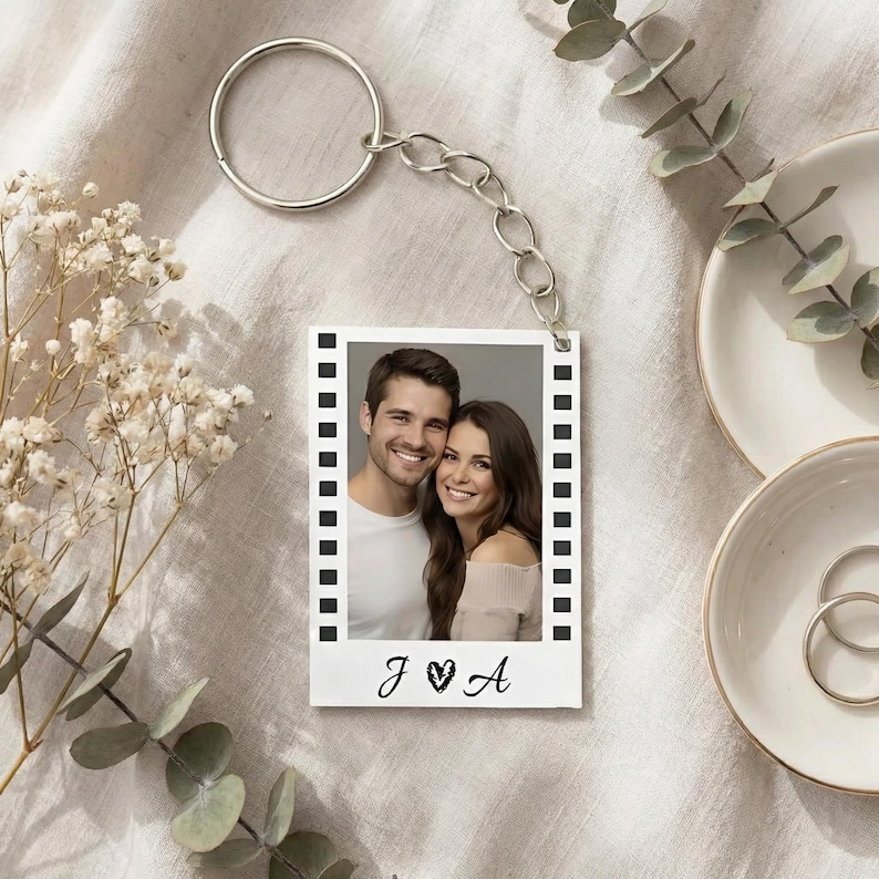 大切な思い出を,カスタムカップルフォトストリップキーチェーンでどこへでも持ち歩きましょう.ヴィンテージフィルムリールを彷彿とさせるこのキーチェーンは,クリスタルのようにクリアな輝きを放ち,大切な「私たち」の瞬間を,鍵を取り出すたびに心を温かくしてくれる,センチメンタルなアクセサリーへと昇華させます.