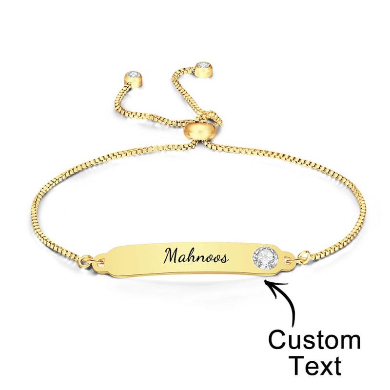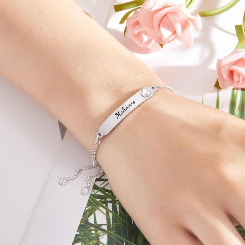 カスタム刻印ブレスレット 名前ブレスレット シンプル ラインストーン ギフト