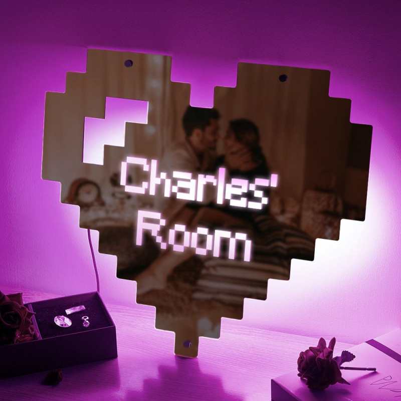 - This super stylish personalised name mirror with LED lighting is a perfect and unique edition to any youngsters bedroom, they will love lighting up the personalised mirror and seeing their own name in lights.This eye-catching personalised name mirror makes the perfect gift for 2024 and it will be cherished and loved for many years to come by the recipient.Includes remote control for LED lighting and chrome wall mounting stand offs.
