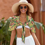 カスタム フェイス ビーチ ラップ イエロー ハワイアン スタイル 女性 ショート サロン 彼女へのギフト