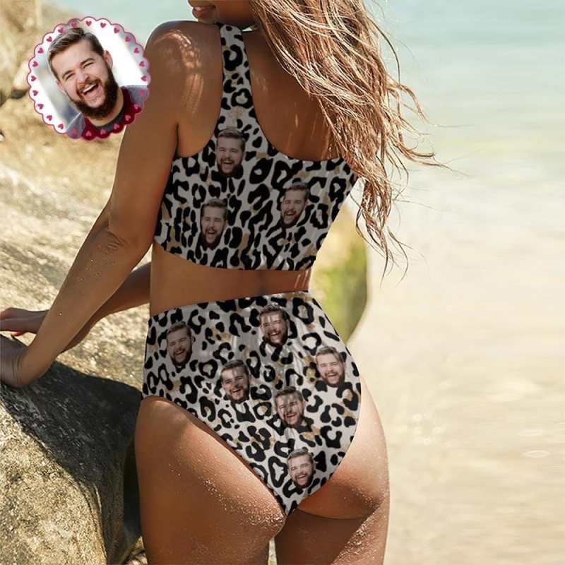 ガールフレンドや妻へのカスタムフェイスビキニかわいい水着ギフト - ヒョウ柄