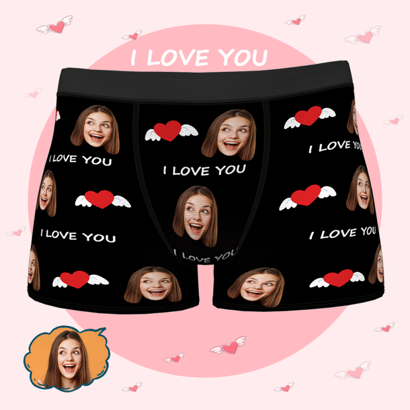 カスタムフェイスボクサーブリーフパーソナライズ写真下着カスタムボクサーブリーフ男性用ボクサーボーイフレンド夫のためのバレンタインギフトお父さんカスタム下着男-私はあなたを愛していますギフト