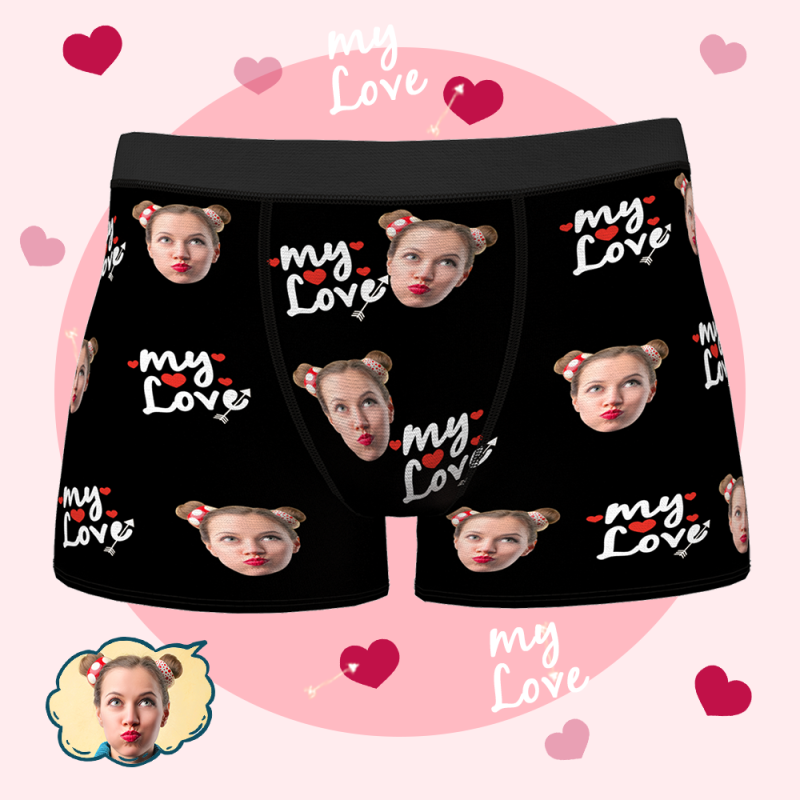 カスタムフェイスボクサーブリーフパーソナライズ写真下着カスタムボクサーブリーフ男性用ボクサーボーイフレンド夫のためのバレンタインギフトお父さんカスタム下着男-私の愛