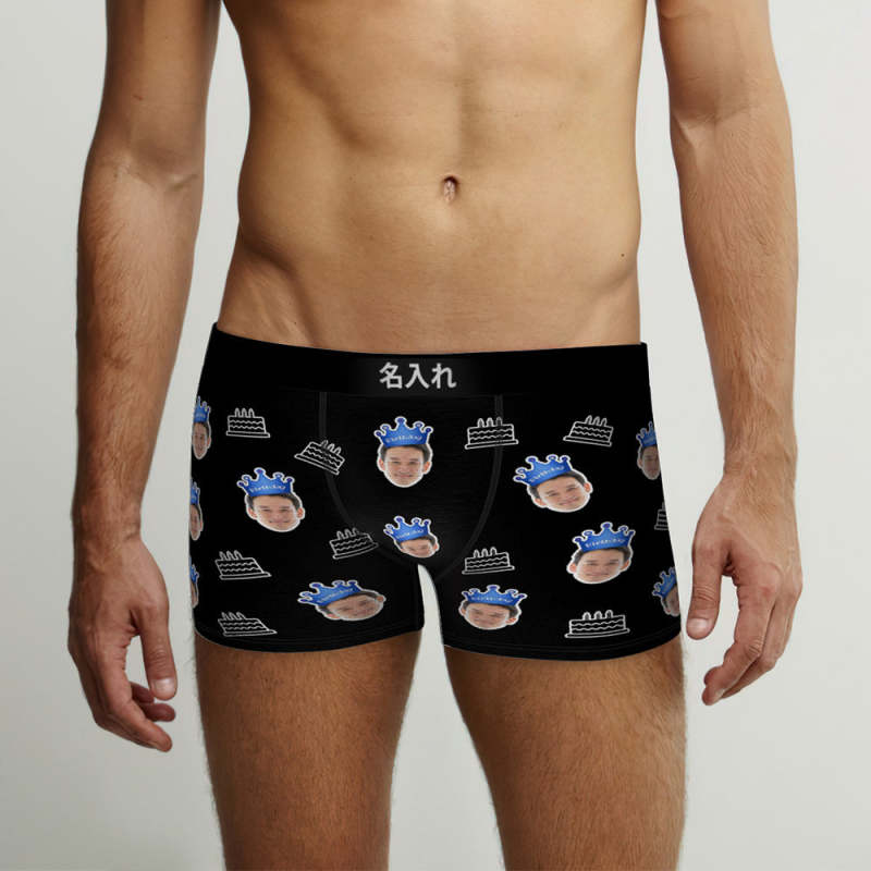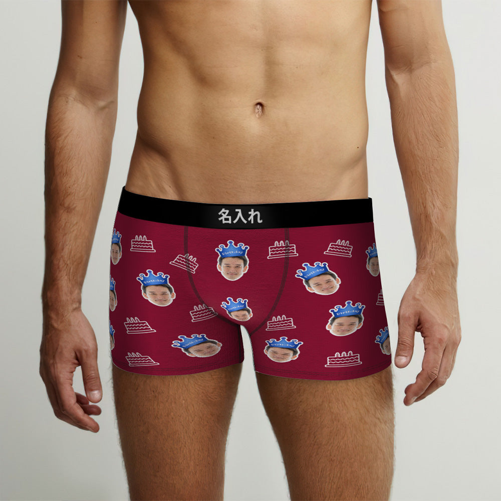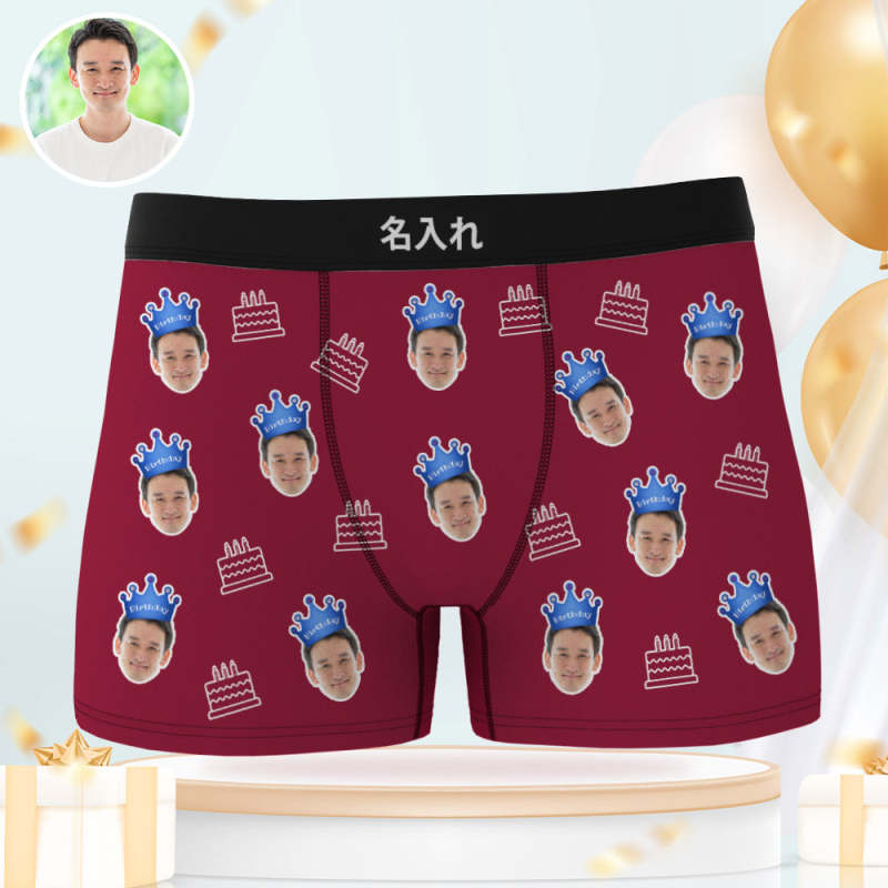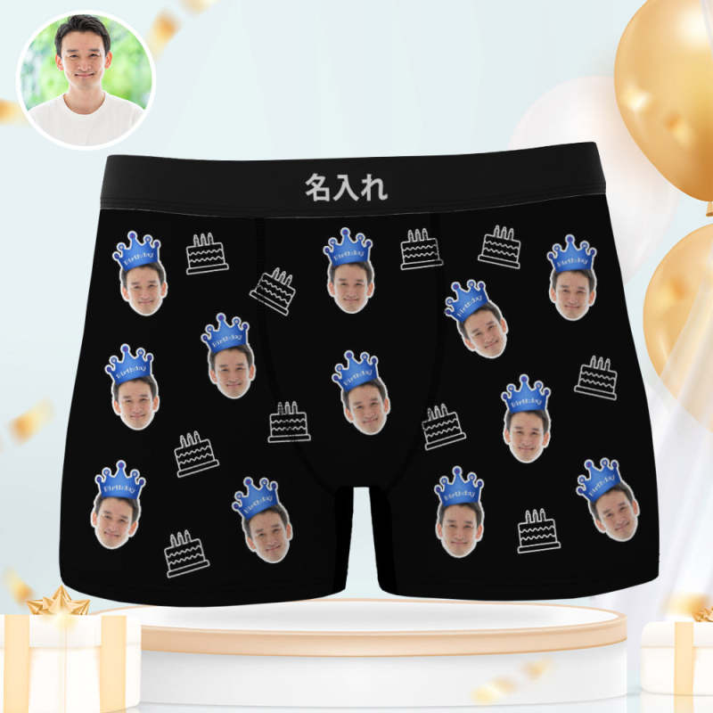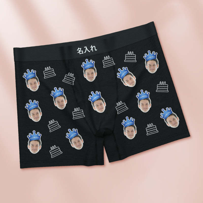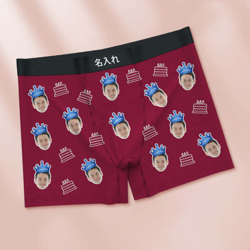 カスタム顔ボクサーブリーフ写真入れ可能な誕生日ケーキ柄ボクサープレゼント