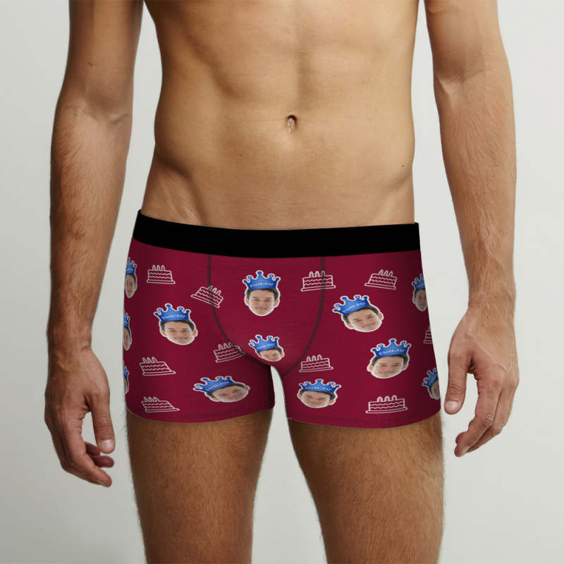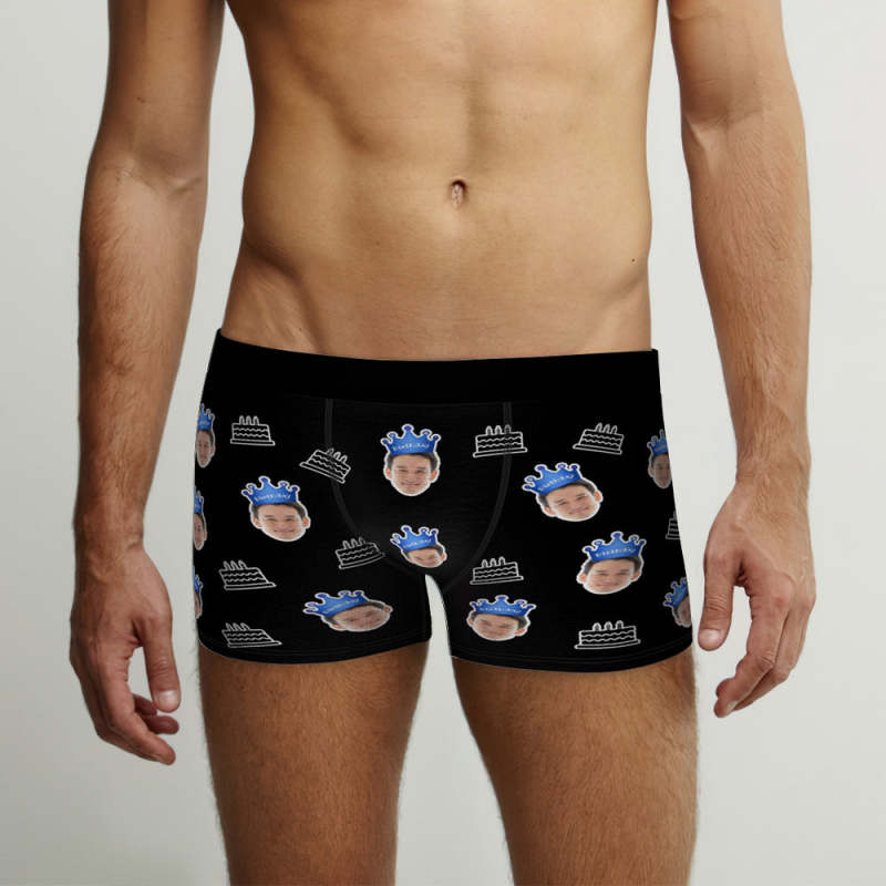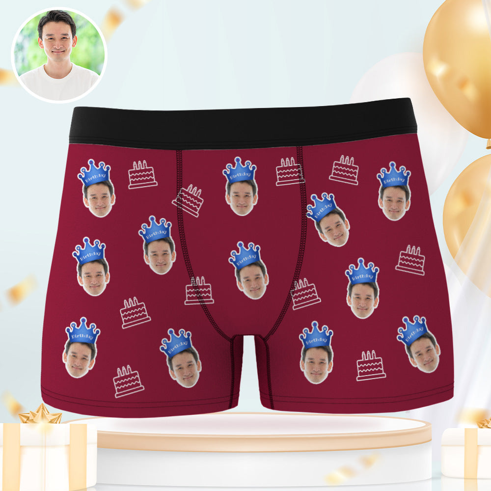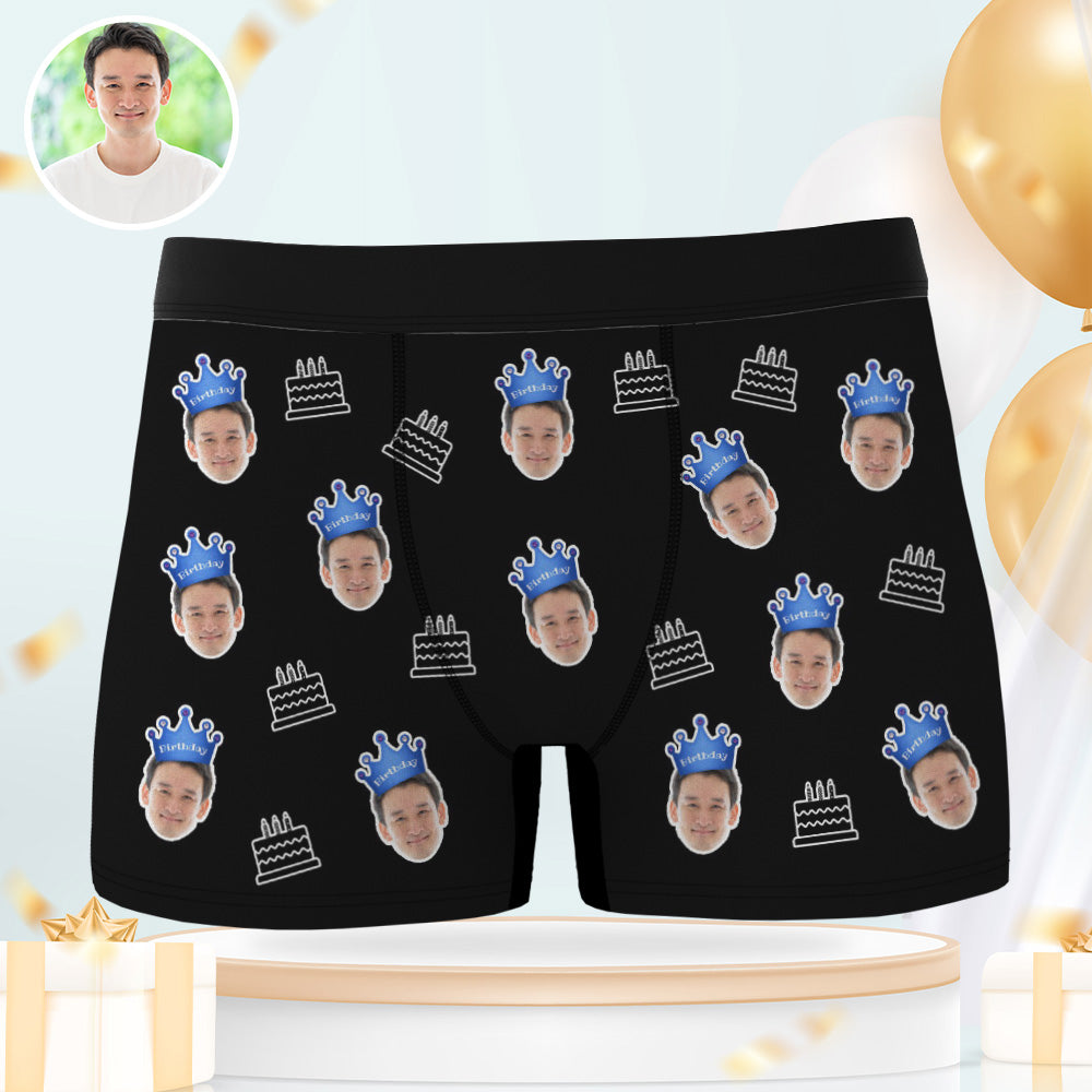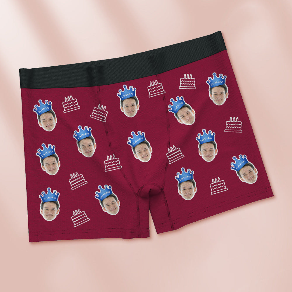 カスタム顔ボクサーブリーフ写真入れ可能な誕生日ケーキ柄ボクサープレゼント