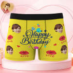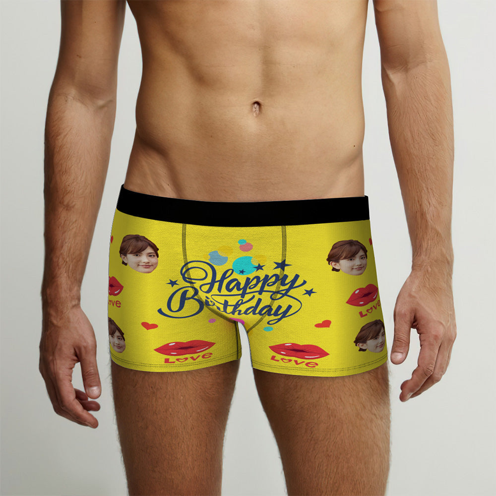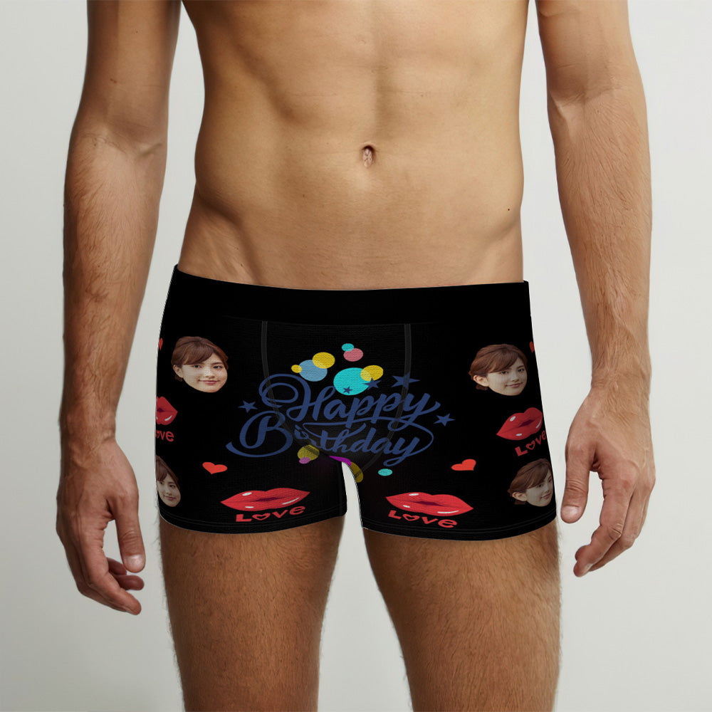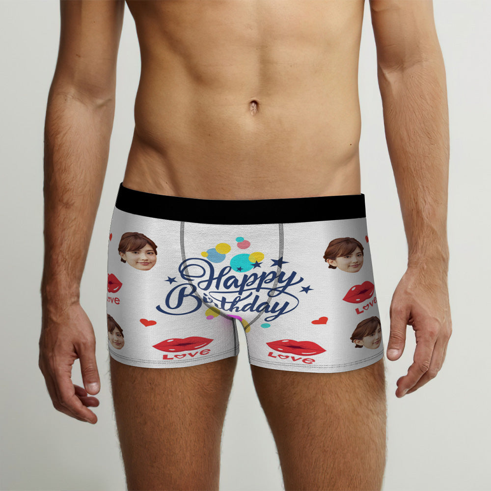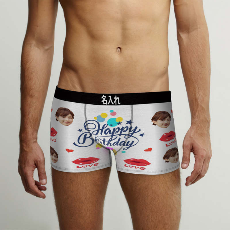 カスタム誕生日ボクサーパンツ-顔の写真入れ可能なオリジナルフォト下着ショーツギフト-誕生日おめでとう