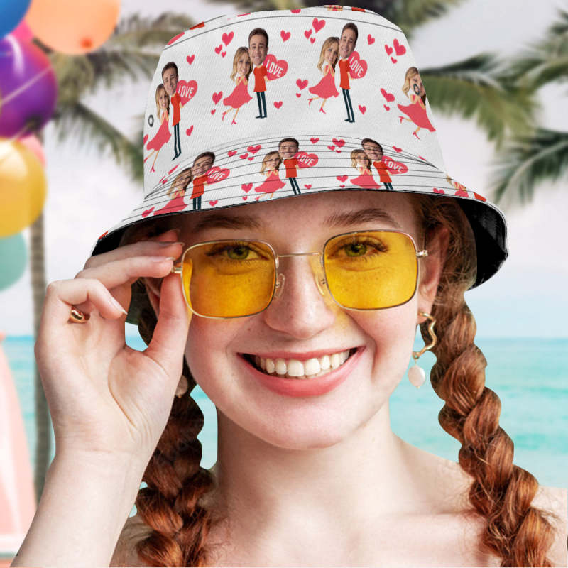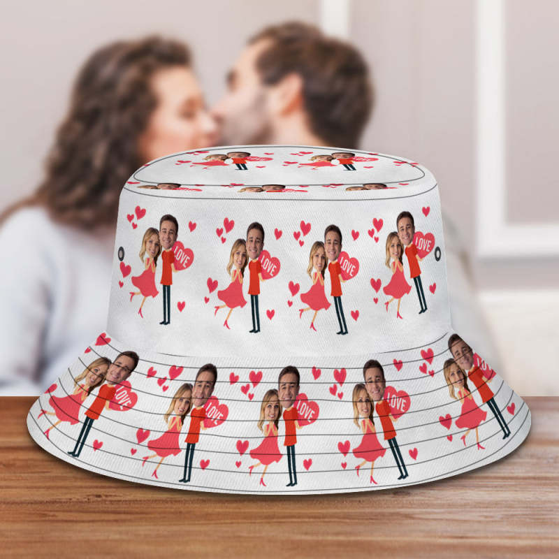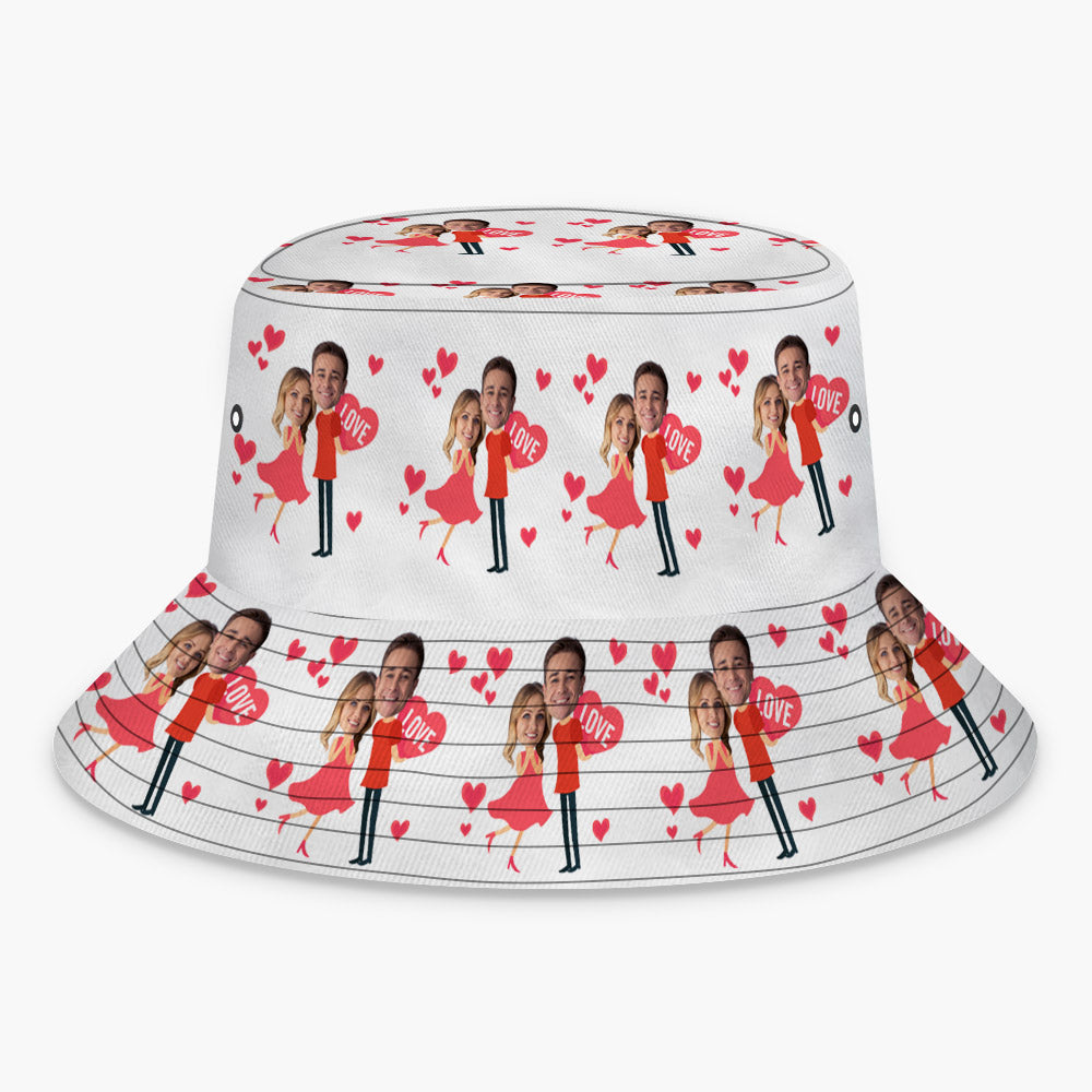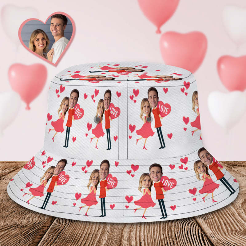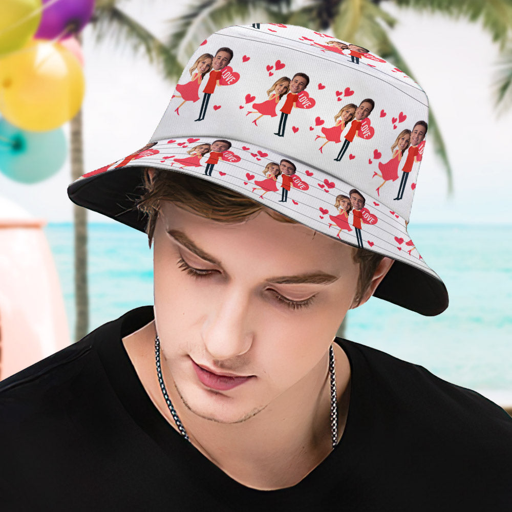 カスタムフェイスバケットハットパーソナライズされたカップルフィッシャーマンキャップバレンタインギフト用
