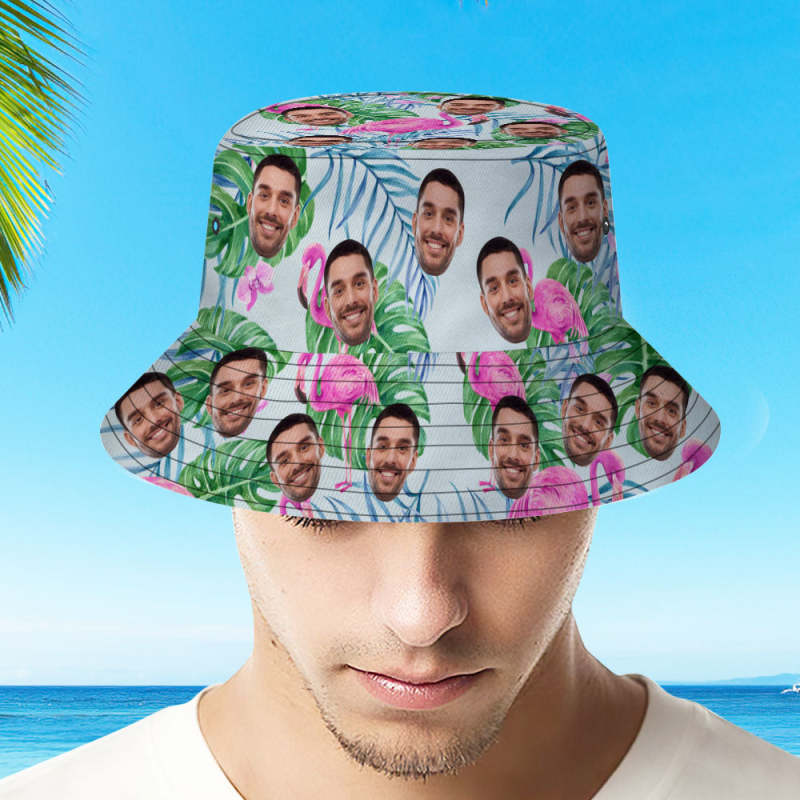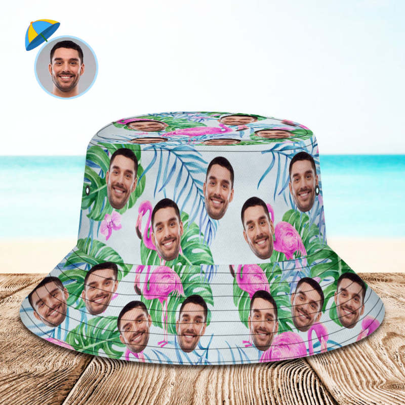カスタムフェイスバケットハットユニセックスフィッシャーマンハットピンクフラミンゴサマーハット