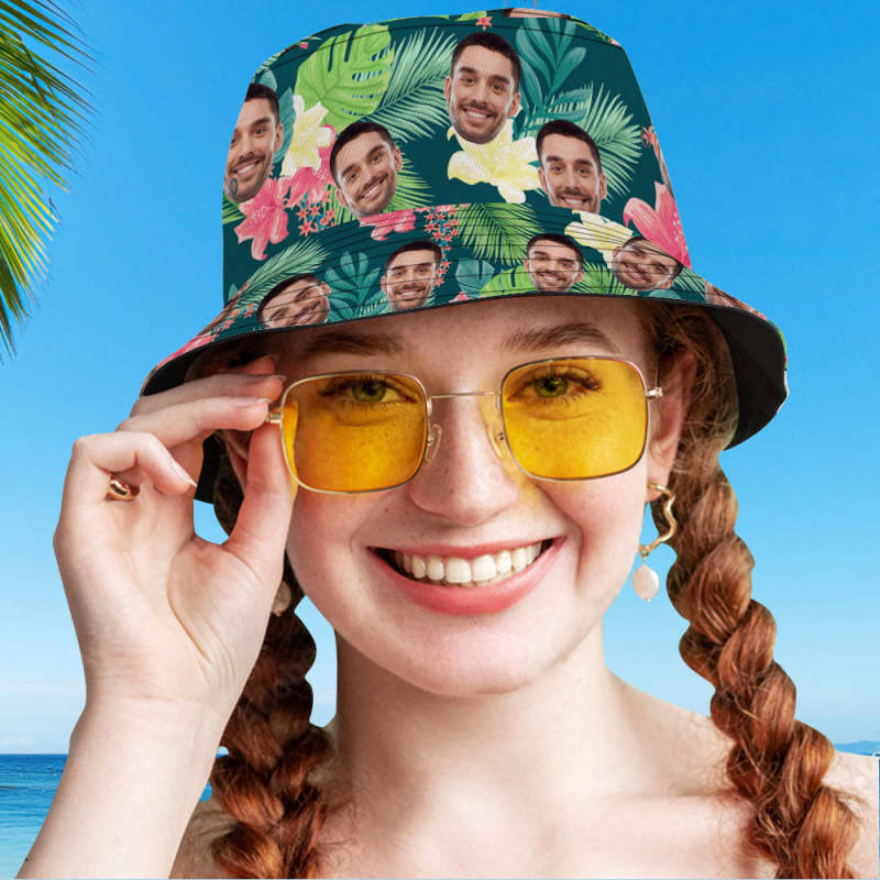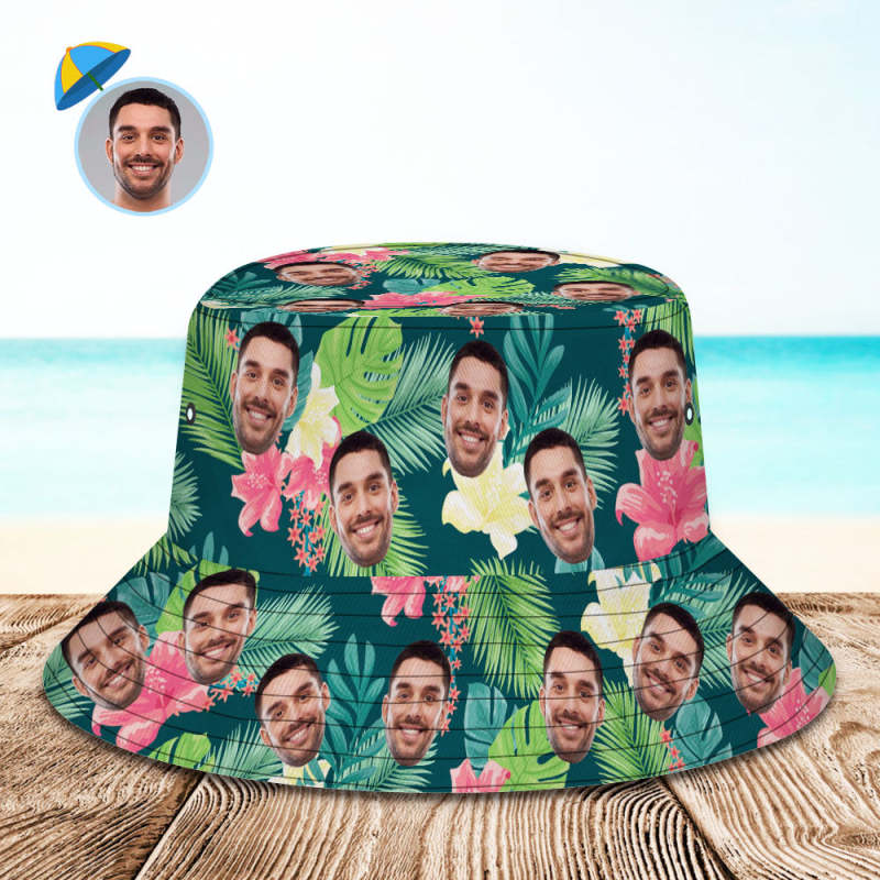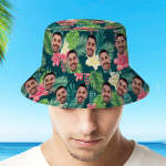 カスタムフェイスバケットハットユニセックス漁師帽子ピンクの花夏の帽子