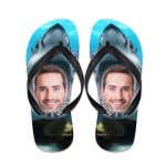 カスタム フェイス ビーチ サンダル、パーソナライズされたシャーク ビーチ サンダル、サマー ビーチ スライド サンダル