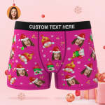 カスタムフォトボクサー-写真入れ可能なハッピーノーム柄のクリスマスピンクのボクサーパンツギフト