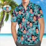 カスタムフェイスアロハシャツ カラフルな葉 パーソナライズされたアロハシャツ