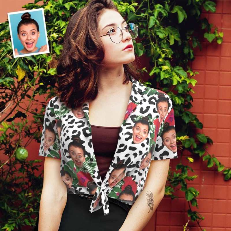 女性用カスタムフェイスアロハシャツ パーソナライズされた女性の写真アロハシャツ 彼女へのギフト - アニマルパーティー