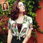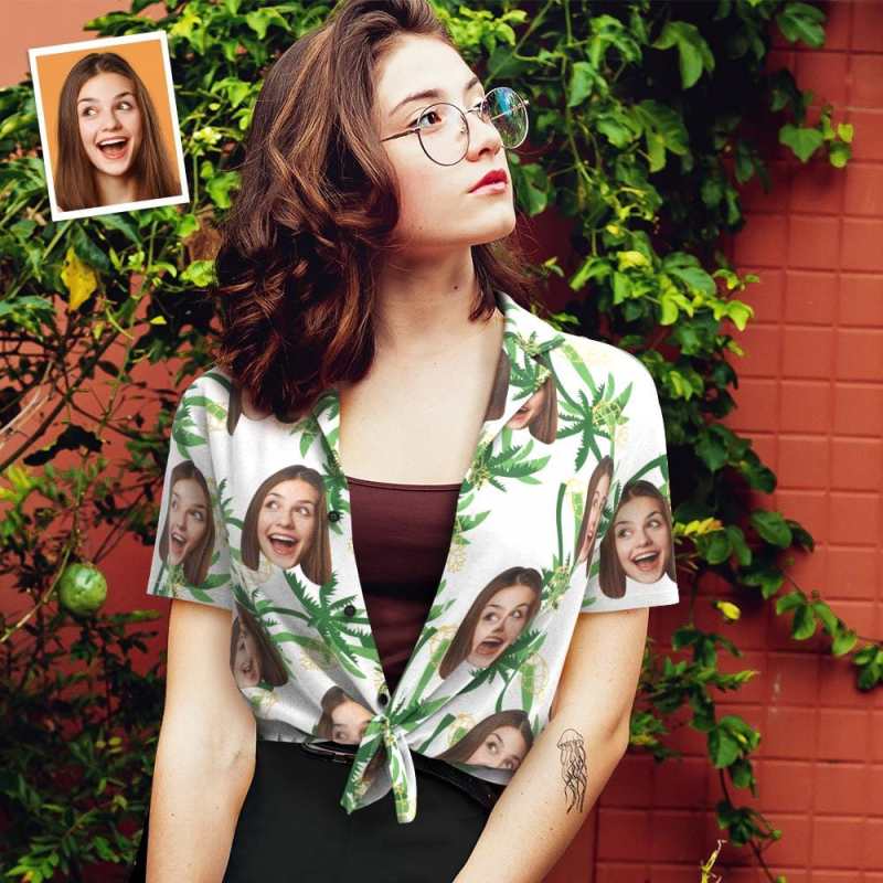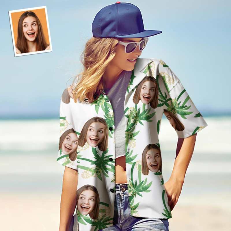 女性用カスタムフェイスアロハシャツ パーソナライズされた女性の写真アロハシャツ 彼女へのギフト - パイナップルパーティー