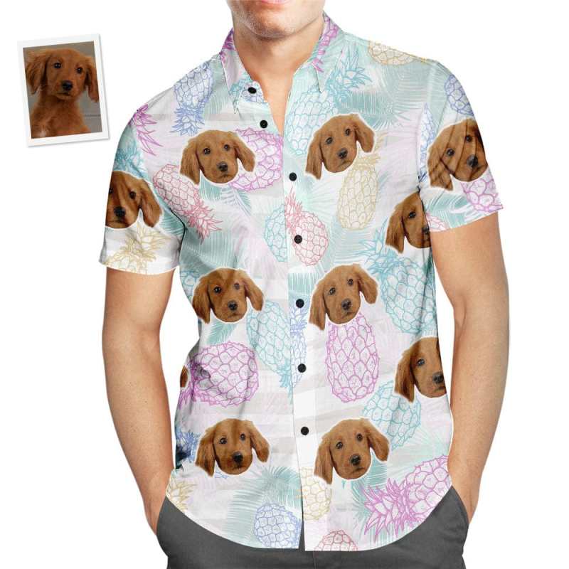 カスタムフェイスアロハシャツパイナップルデザインメンズ人気総柄ハワイアンビーチシャツホリデーギフト