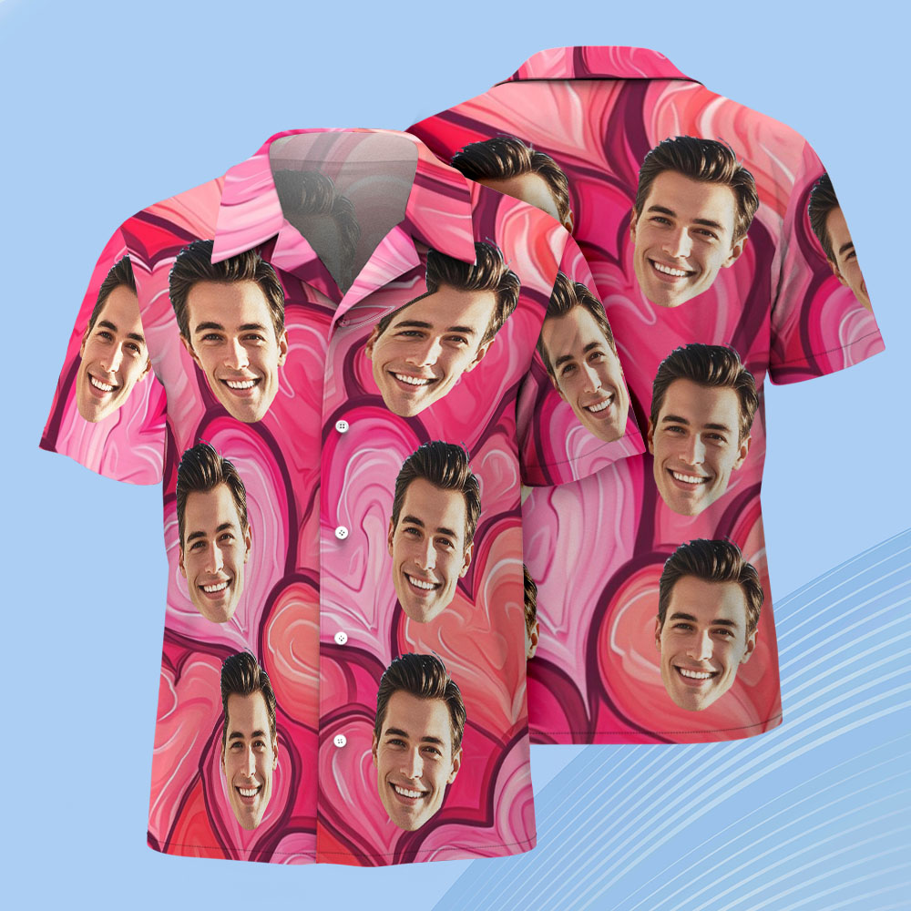 カスタムフェイスハワイアンシャツ ピンクハートアート サマーアロハバケーション