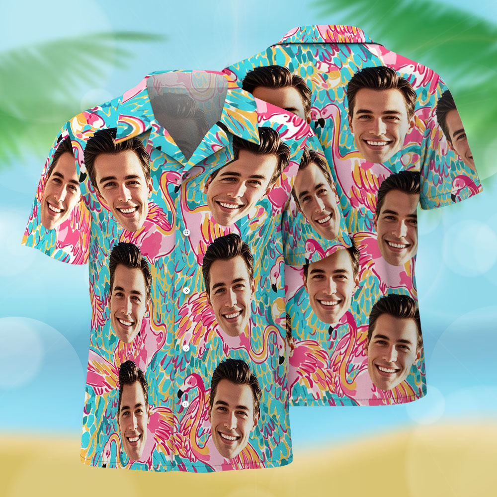 カスタムフェイスハワイアンシャツ 夏用フラミンゴアブストラクトアロハシャツ バケーション メンズ